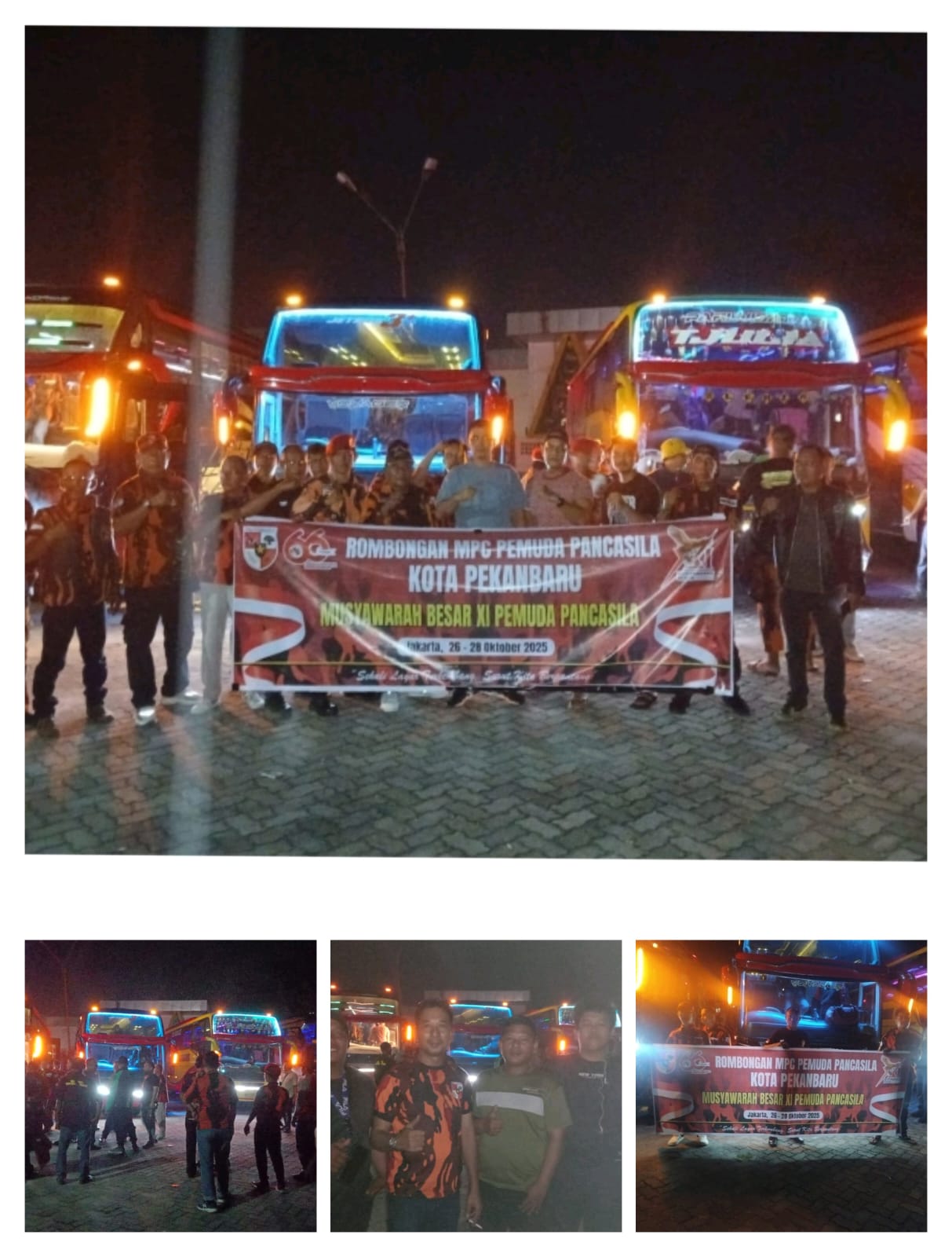 PEKANBARU – Ketua Majelis Pimpinan Cabang (MPC) Pemuda Pancasila (PP) Kota Pekanbaru, Riau, Iwan Pansa memberangkatkan sebanyak 250 orang pengurus dan kader PP untuk menghadiri Mubes XI PP Tahun 2025 pada tanggal 26-28 Oktober di Jakarta. Jumat 24 Oktober 2025.