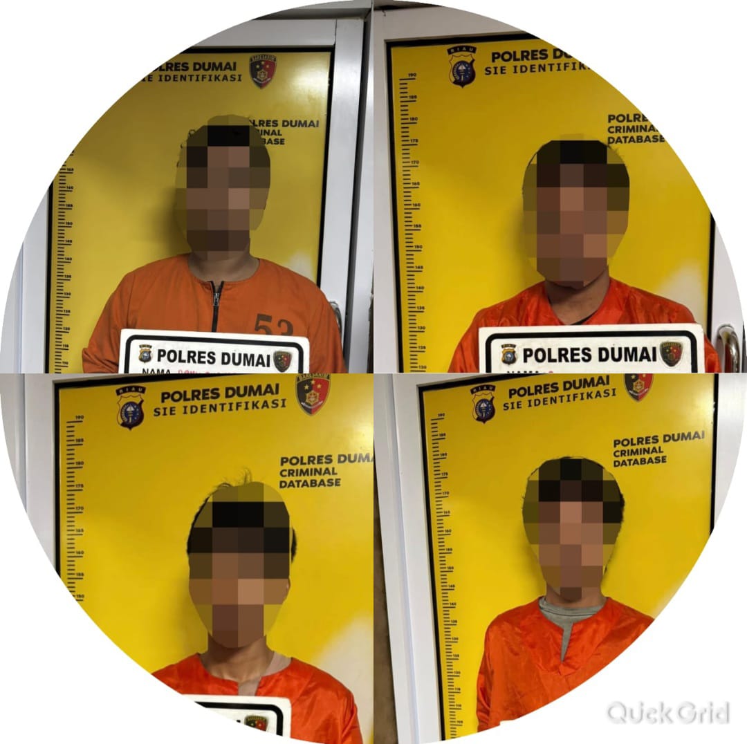 Dari hasil penyelidikan, petugas memperoleh informasi bahwa empat orang terduga pelaku berinisial D.D, M.Y.R, P.G.A, dan P.A telah diamankan oleh Bhabinkamtibmas Polsek Dumai Kota, yang kemudian diserahkan kepada penyidik Sat Reskrim Polres Dumai.