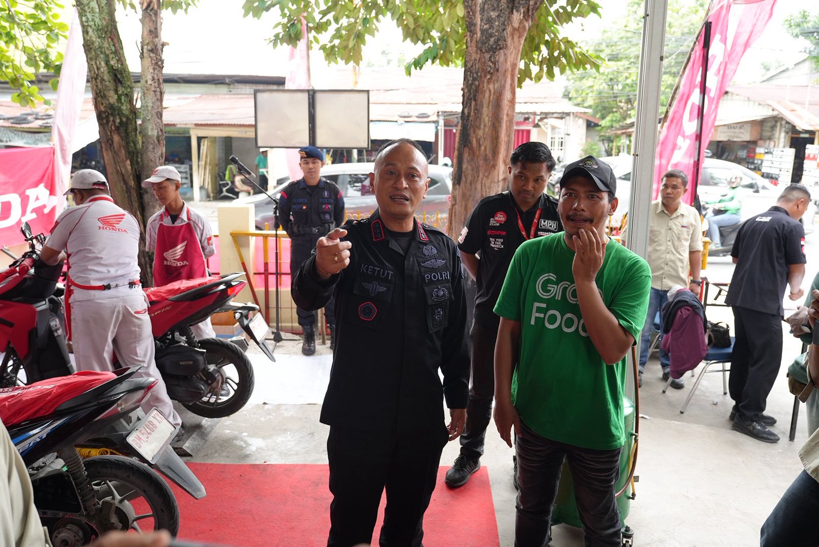 “Hari ini kita bekerja sama dengan Honda. Ke depan, bengkel ini akan dibuka setiap hari khusus untuk ojol. Selain itu, kita juga menyediakan kantin atau warung yang bisa dimanfaatkan driver untuk beristirahat sambil menunggu orderan,” kata Kombes Ketut.