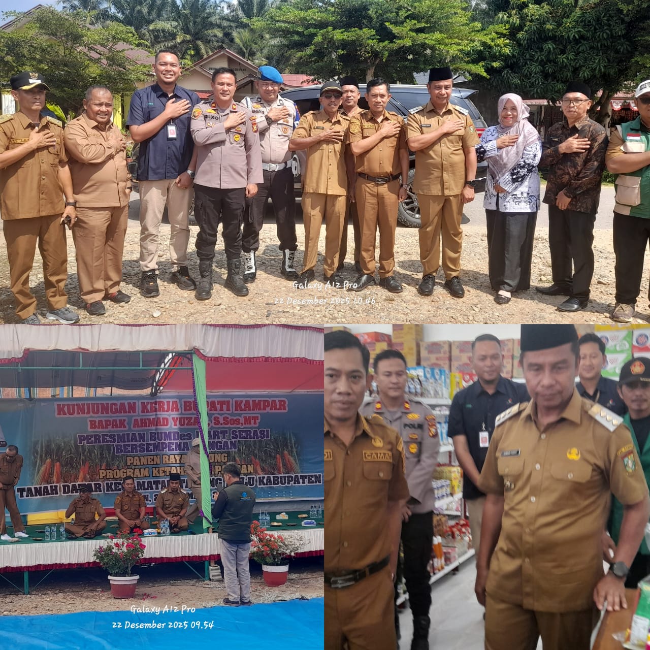 Kampar – Bupati Kampar, Bapak Ahmad Yuzar, S.Sos, MT, melaksanakan kunjungan kerja ke Desa Tanah Datar, Kecamatan Tapung Hulu, Kabupaten Kampar, pada Senin, 22 Desember 2025. Kunjungan kerja tersebut dirangkaikan dengan peresmian BUMDes Mart Serasi sekaligus panen raya jagung dalam rangka mendukung program ketahanan pangan.