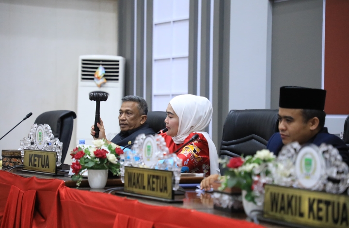 Agenda langsung dipimpin Ketua DPRD Hj. Sumiartini, didampingi Wakil Ketua Mohammad Aidi, S.H., Nono Patria Pratama, S.E., Porkot Lubis, S.H., M.H bersama anggota DPRD memenuhi kourum hadir 41 orang. Turut hadir Bupati Anton, S.T., M.M. mewakili Forkomda, Sekda Muhammad Zaki, TAPD, para Asisten, Staf Ahli, Kepala OPD, Sekwan Sariaman, Kabag Humas DPRD Rike Desmalizarni, tokoh masyarakat serta undangan lainnya.