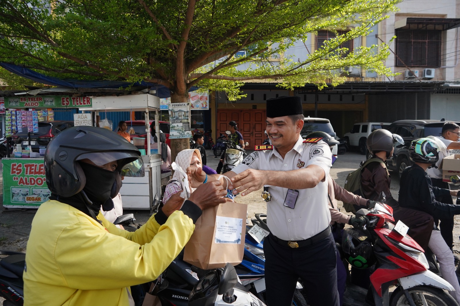 Pekanbaru – Dalam semangat berbagi dibulan suci Ramadan, Rumah Tahanan Negara (Rutan) Kelas I Pekanbaru menggelar kegiatan pembagian takjil kepada masyarakat yang melintas di Jalan Hangtuah, Pekanbaru. Kegiatan ini menjadi wujud kepedulian sosial sekaligus bentuk nyata dukungan terhadap pelaku Usaha Mikro, Kecil, dan Menengah (UMKM) di sekitar lingkungan rutan.