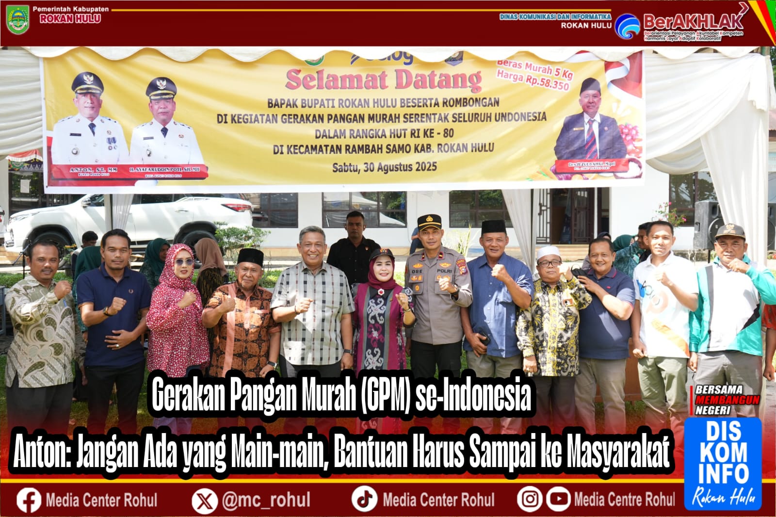 Rohul – Bupati Rokan Hulu, Anton, ST., MM menghadiri kegiatan Gerakan Pangan Murah (GPM) serentak se-Indonesia secara virtual di Halaman Kantor Camat Rambah Samo, Sabtu (30/8/2025).