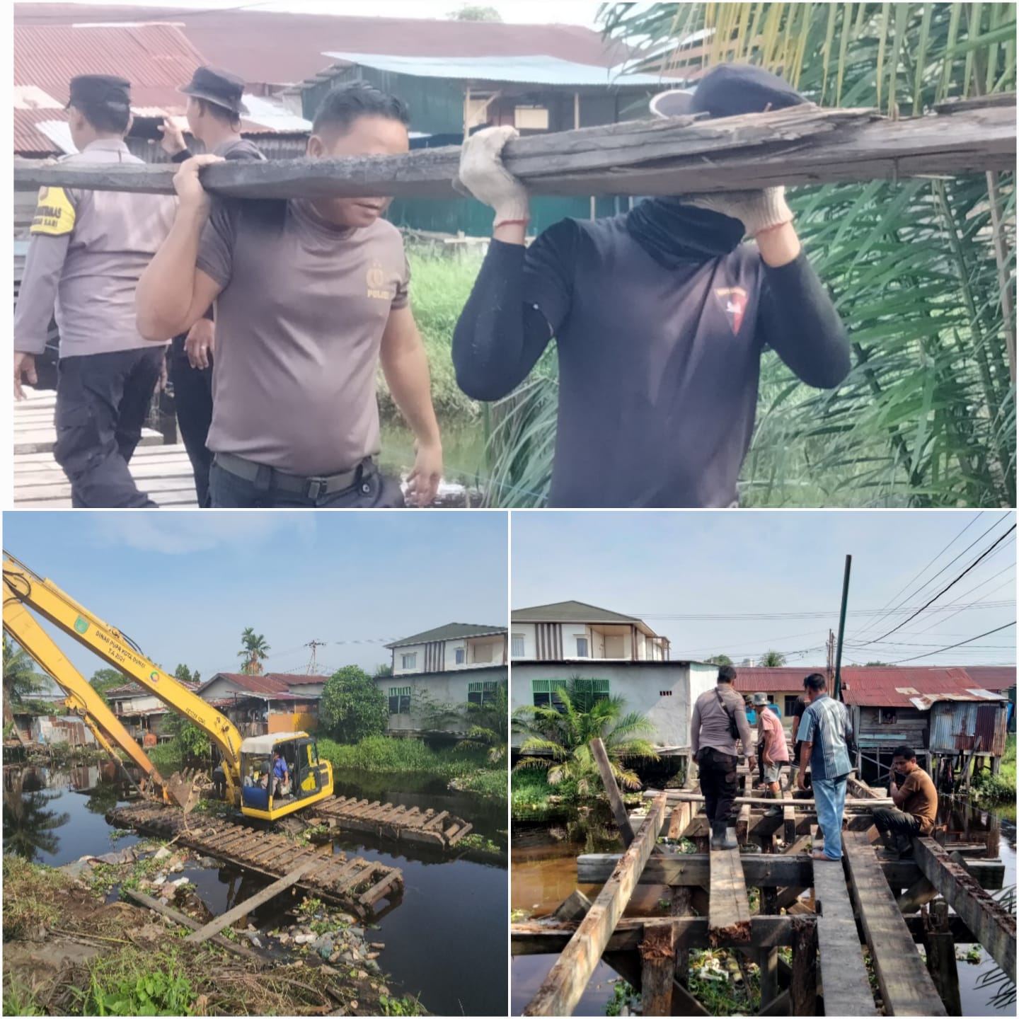 Dumai – Semangat kebersamaan terlihat kuat dalam kegiatan gotong royong yang digelar di wilayah Dumai Selatan, Jumat pagi, 17 April 2026. Kegiatan ini difokuskan pada pembongkaran jembatan kayu penghubung Kelurahan Bumi Ayu dan Kelurahan Bukit Datuk sebagai bagian dari pembangunan Jembatan Merah Putih Presisi tahap II secara permanen.