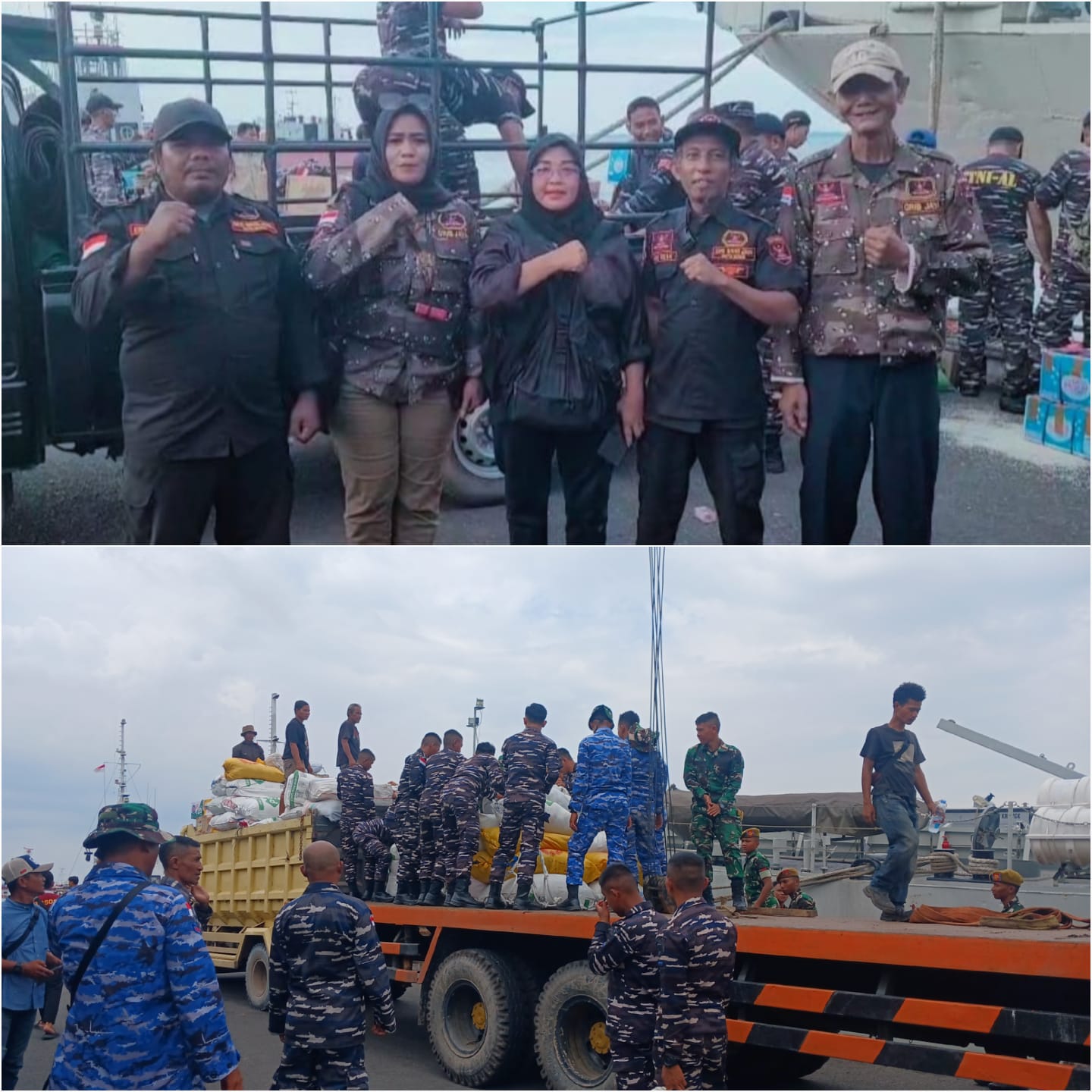 Bantuan berupa sembako, perlengkapan kebutuhan dasar, dan logistik pemulihan dikemas rapi dalam beberapa truk sebelum akhirnya dinaikkan ke kapal untuk diberangkatkan menuju daerah terdampak.