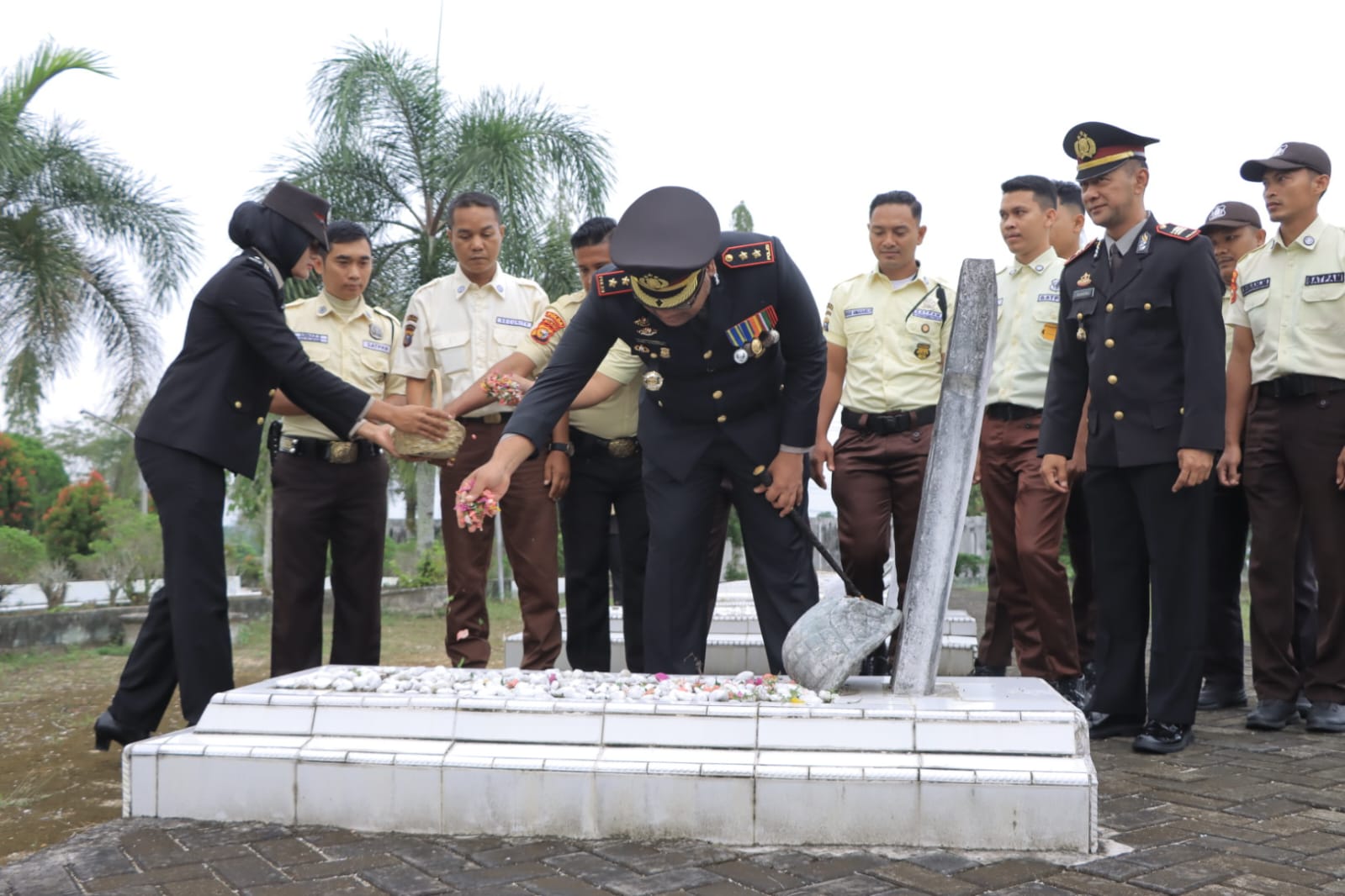 BANGKINANG – Suasana khidmat dan penuh penghormatan mewarnai upacara ziarah dan tabur bunga yang dipimpin oleh Kapolres Kampar AKBP Boby Ramadhan Putra Subayang S.I.K, di Taman Makam Pahlawan (TMP) Kusuma Eka Bakti Bangkinang, Selasa (06/01/2026). Kegiatan ini merupakan rangkaian peringatan Hari Ulang Tahun (HUT) Satpam ke-45, sebagai wujud penghargaan atas jasa dan pengabdian Satpam dalam menjaga keamanan dan ketertiban masyarakat.