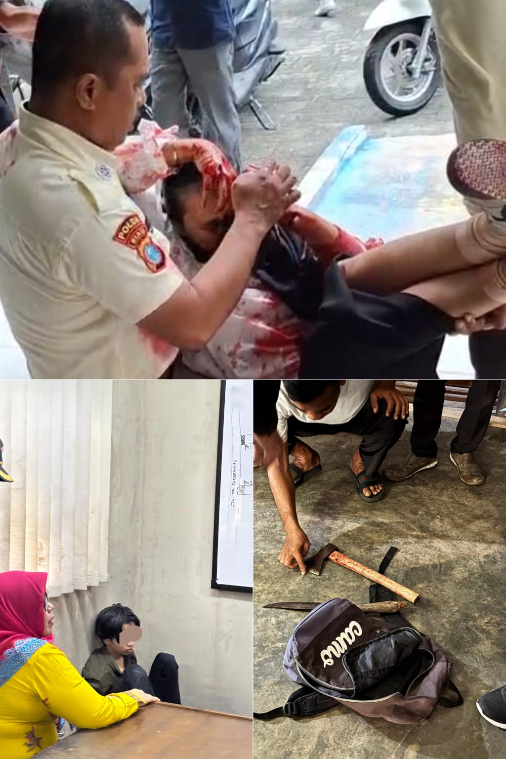 Berdasarkan informasi yang dihimpun, seorang mahasiswi menjadi korban pembacokan yang dilakukan oleh seorang mahasiswa berinisial RM. Akibat kejadian tersebut, korban mengalami luka pada bagian tangan dan kening.