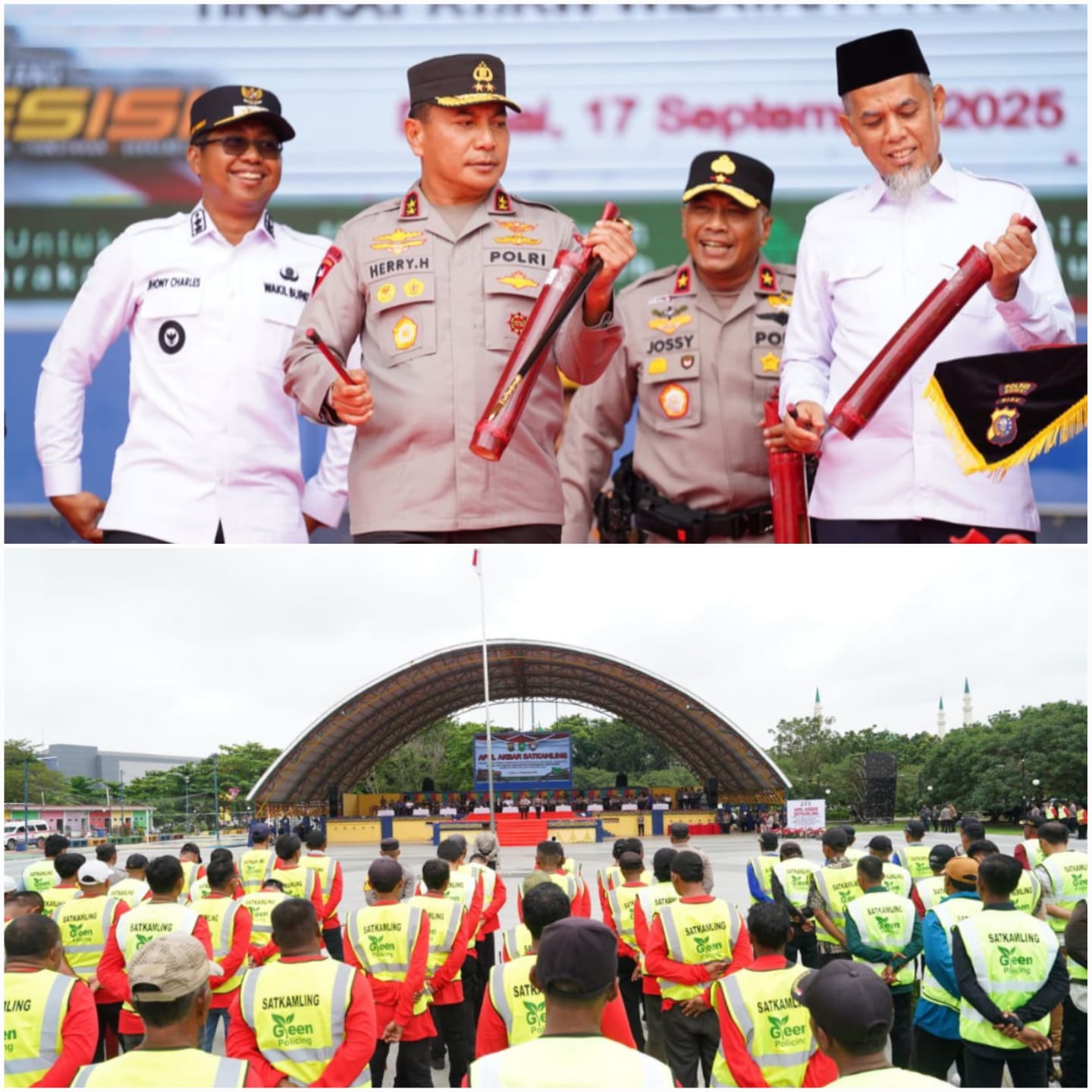 Dumai – Kepolisian Daerah (Polda) Riau mengaktifkan kembali satuan keamanan lingkungan (Satkamling) berbasis keadilan ekologis yang diberi nama ‘Green Satkamling’. Kegiatan ini diawali dengan apel akbar yang dipimpin langsung oleh Kapolda Riau Irjen Herry Heryawan. Apel akbar Green Satkamling digelar di Lapangan Taman Bukit Gelanggang, Jalan HR Soebrantas, Kota Dumai, Rabu (17/9/2025).