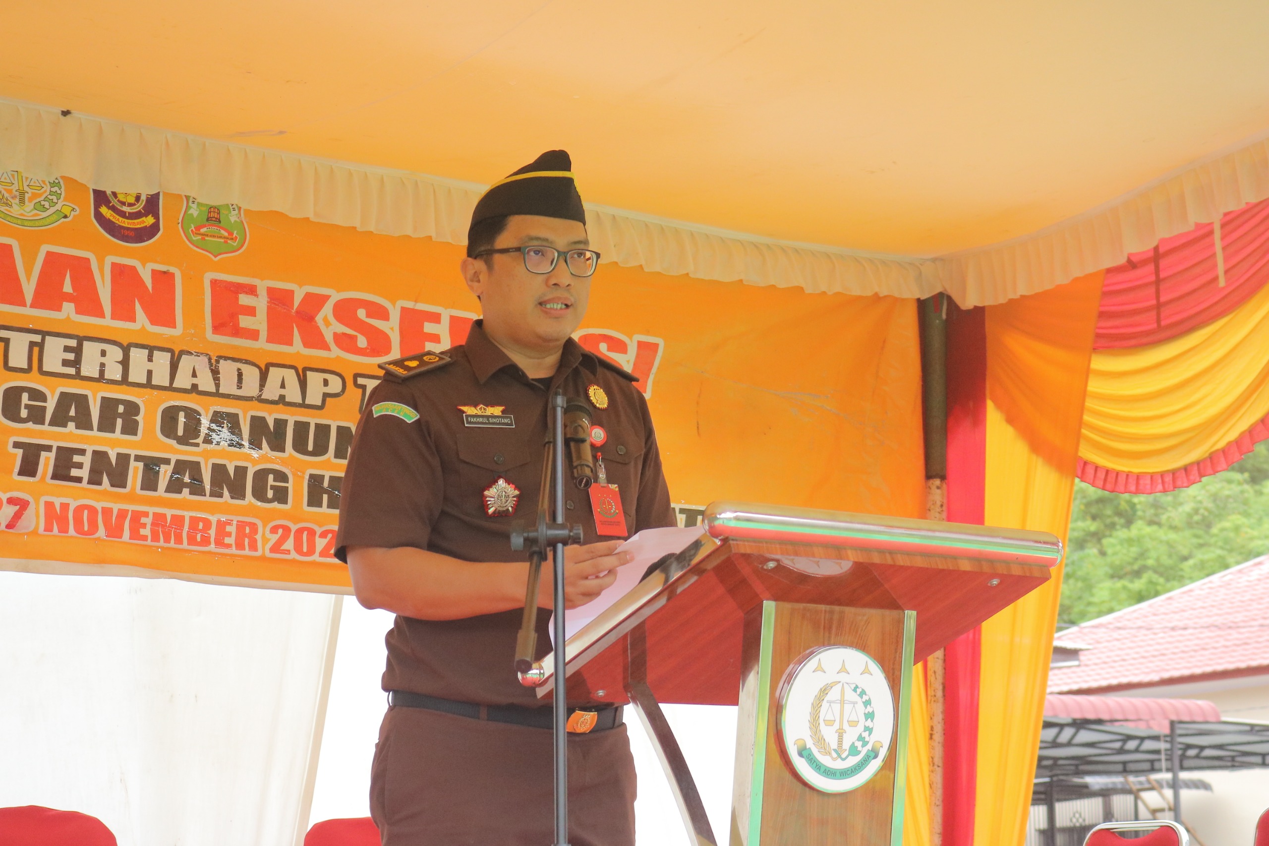 Kepala Kejaksaan Negeri Aceh Barat Daya, Bambang Heripurwanto, S.H., M.H., dalam sambutannya yang disampaikan oleh Kasi Tindak Pidana Umum, Fakhrul Rozi Sihotang, S.H., M.H., Dalam syariat Islam, penetapan dan implementasi hukuman cambuk mempunyai beberapa maksud dan tujuan, diantaranya : pencegahan, perbaikan dan pendidikan, dan kemaslahatan bagi masyarakat. Pencegahan dilakukan untuk menahan orang yang berbuat jarimah untuk tidak mengulangi perbuatannya, sedangkan perbaikan dan pendidikan bermaksud untuk mendidik pelaku untuk menjadi orang baik dan sadar akan kesalahannya, dan memberikan hukuman kepada orang yang melakukan kejahatan bukan berarti membalas dendam, melainkan sesungguhnya untuk kemaslahatannya.