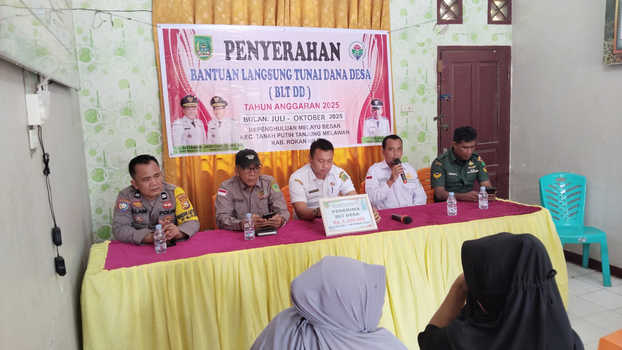 Cakrarepublik.com -Melayu besar, TPTM —Pemerintah kepenghuluan Melayu besar salurkan Bantuan BLT dana desa tahap 2 tahun anggaran 2025 kepada 48 orang penerima manfaat, bantuan ini disalurkan di aula kantor penghulu Melayu besar, kecamatan Tanah putih tanjung melawan(TPTM), pada Rabu (29/10/2025)
