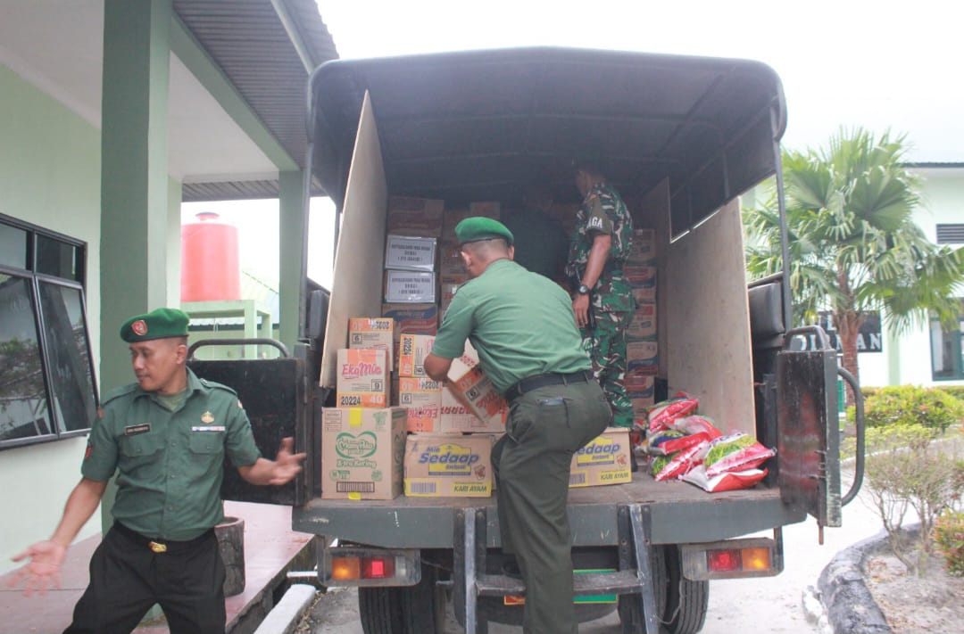 Bantuan tersebut merupakan hasil penggalangan donasi dari keluarga besar Kodim 0320/Dumai, mulai dari prajurit TNI AD, Persit KCK Cabang LXXV, hingga PNS Kodim. Berbagai jenis kebutuhan dasar berhasil dikumpulkan, antara lain beras, mie instan, makanan cepat saji, biskuit, susu, minyak goreng, pakaian layak pakai, perlengkapan balita, serta sejumlah kebutuhan pokok lainnya.