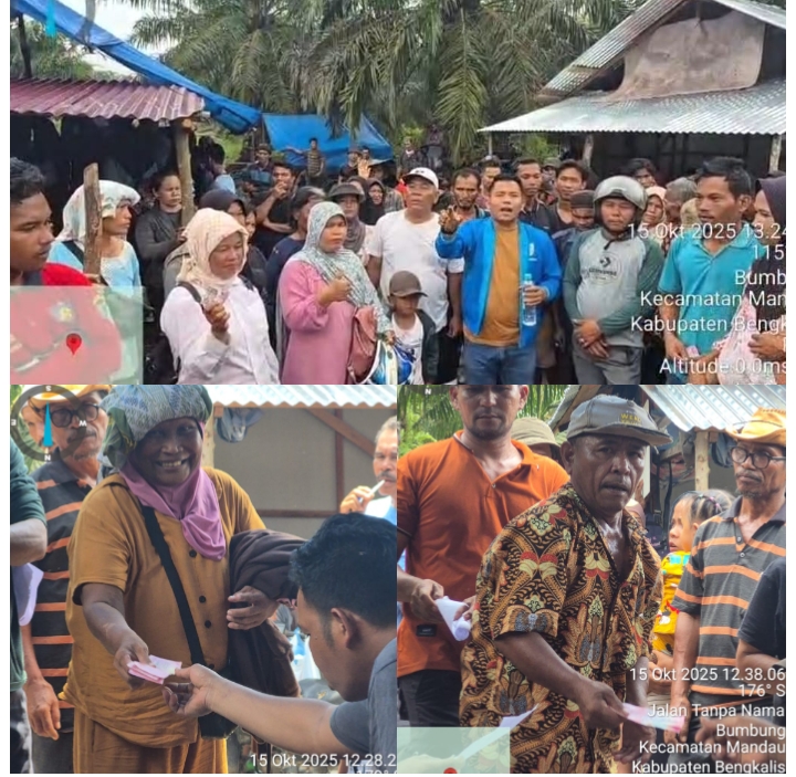 Bathin Solapan, Bengkalis – Masyarakat Desa Bumbung, Kecamatan Bathin Solapan, Kabupaten Bengkalis, kembali menunjukkan kekompakan dan kepedulian sosial dalam mengelola kebun sawit seluas 364 hektare yang selama ini mereka rawat secara mandiri. Rabu 15 Oktober 2025.