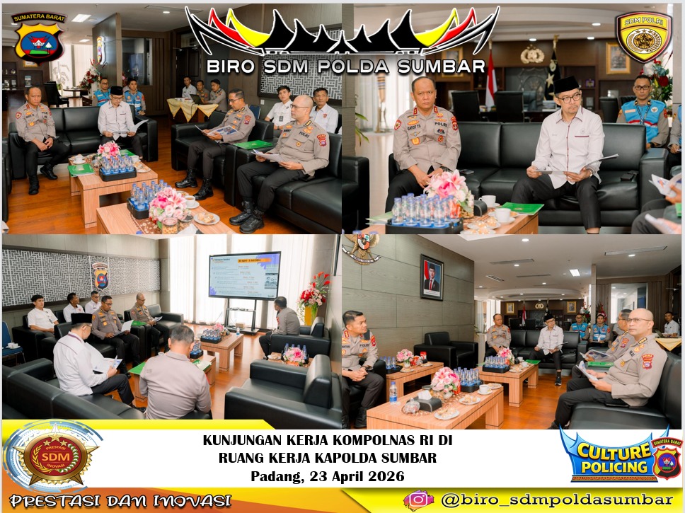 Padang – Komisi Kepolisian Nasional (Kompolnas) Republik Indonesia melaksanakan kunjungan kerja ke Polda Sumatera Barat dalam rangka melakukan pengawasan dan pemantauan proses penerimaan anggota Polri Tahun Anggaran 2026, Kamis (23/4/2026).
