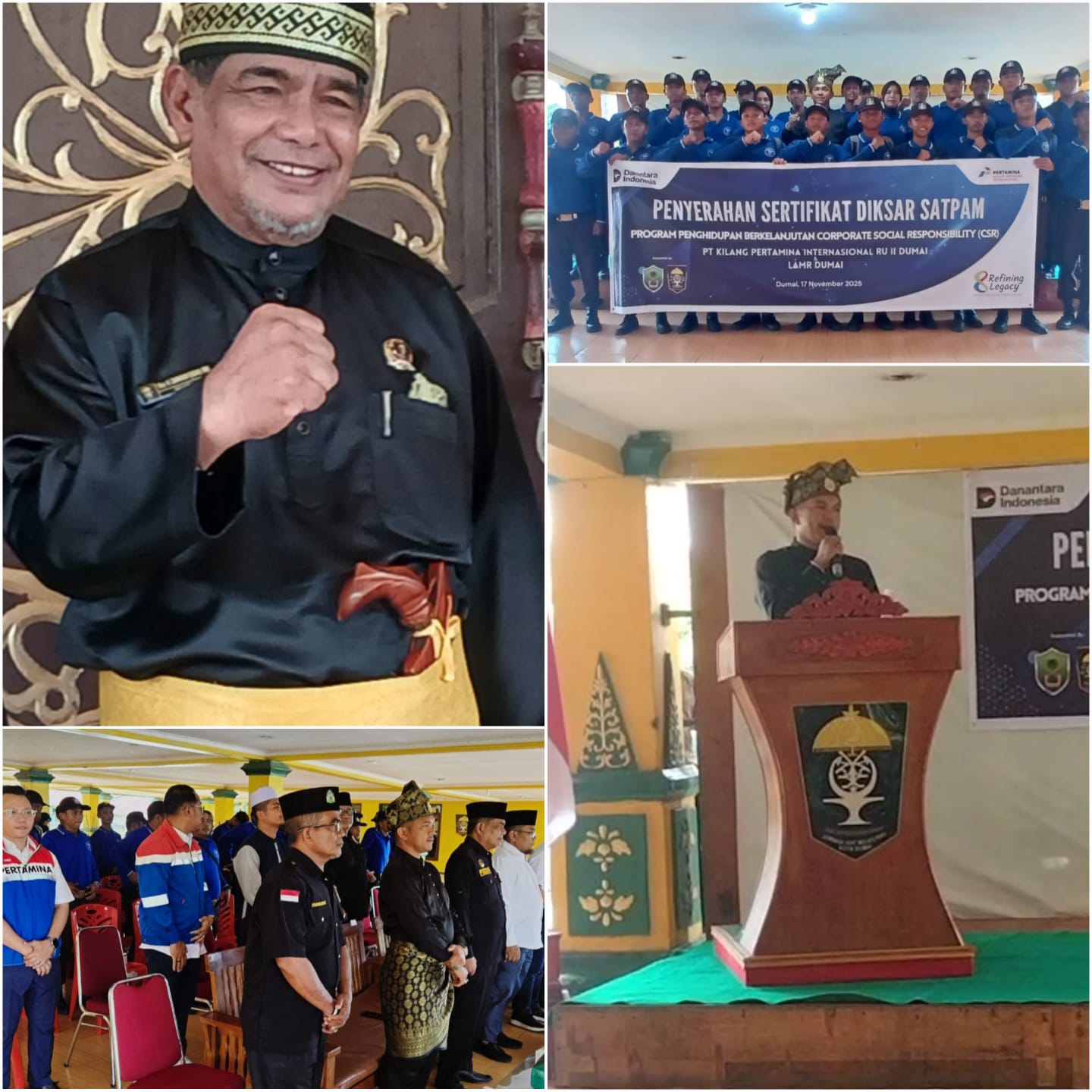 Dumai, 17 November 2025 — Lembaga Adat Melayu Riau (LAMR) Kota Dumai kembali menunjukkan sebagai lembaga adat yang aktif mendorong peningkatan kualitas daya manusia daerah. Melalui sinergi dengan PT Kilang Pertamina Internasional (KPI) RU II Dumai, LAMR Kegiatan Penyerahan Sertifikat Pendidikan Dasar (Diksar) Satpam Garda Pratama, yang berlangsung di Gedung LAMR Dumai.
