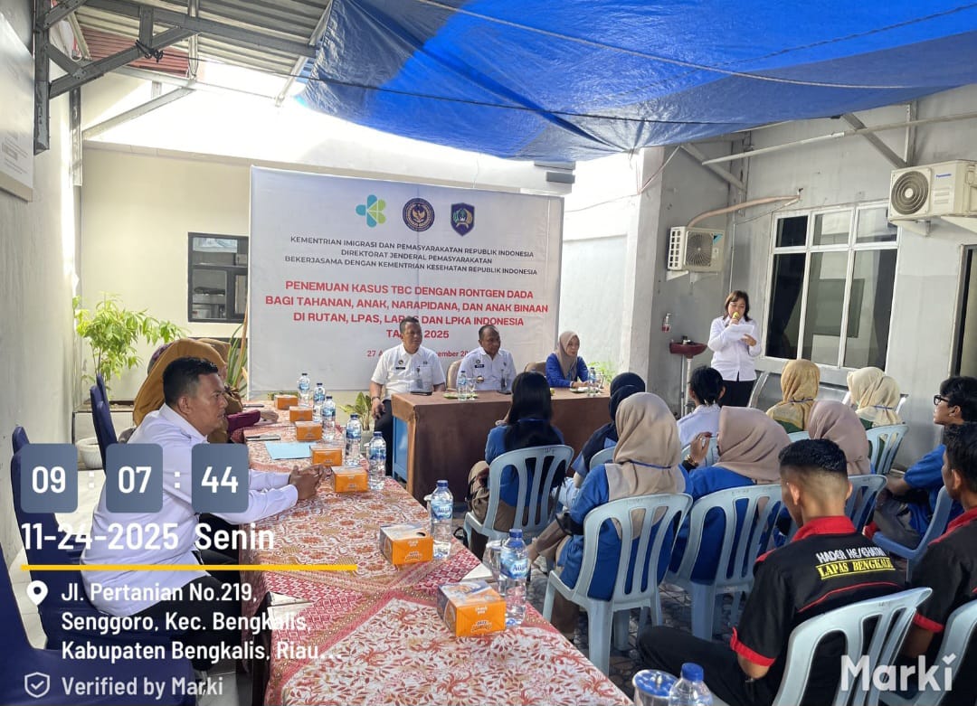 Bengkalis – Lembaga Pemasyarakatan (Lapas) Kelas IIA Bengkalis pada Senin(24/11), melaksanakan kegiatan skrining dan pemeriksaan Tuberkulosis (TBC) menggunakan Rontgen dada bagi Narapidana dan Tahanan. Pemeriksaan dimulai pukul 09.00 WIB hingga selesai, menyasar penghuni Blok A sebagai kelompok pertama. Kegiatan ini menjadi langkah proaktif Lapas Bengkalis dalam memastikan deteksi dini dan pencegahan penularan penyakit, sekaligus wujud komitmen meningkatkan standar kesehatan di dalam lapas.