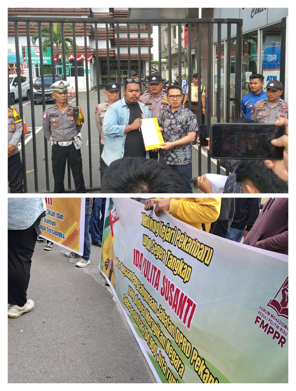 CAKRAREPUBLIK COM – PEKANBARU – Puluhan mahasiswa yang tergabung dalam Forum Mahasiswa Peduli Politik Riau (FMPPR) menggelar aksi demonstrasi di depan kantor Kejaksaan Negeri (Kejari) Pekanbaru pada Kamis (18/09/2025). Aksi ini dilakukan sebagai bentuk desakan agar Kejari segera mengusut tuntas dugaan kasus korupsi yang menyeret nama politisi Riau, Ida Yulita Susanti.