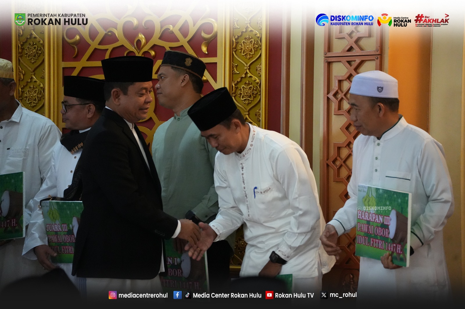 Plh Bupati Rokan Hulu H.Syafaruddin Poti SH MM yang berada pada saf paling depan tampil mengenakan busana muslim warna Putih lengkap dengan peci hitam dengan setelan jas didampingi para pejabat daerah yang ikut melaksanakan Salat Ied diantaranya Sekda Rohul Muhamad Zaki, Ketua DPRD Rokan Hulu, Ketua GOW Rokan Hulu, Anggota Forkopinda Rokan Hulu, Staf Ahli Bupati dan para Asisten Setda Rokan Hulu, Kakan Kemenag Rohul H. Zulkifli Syarif, dan sejumlah kepala OPD di lingkungan Pemkab Rohul, selain itu tampak juga hadir Ketua Lembaga Adat Melayu Riau (LAMR) bersama, Para alim ulama, para tokoh masyarakat, Tokoh Adat, dan orang tua, para pemuda, Tokoh Wanita serta seluruh masyarakat Rokan Hulu