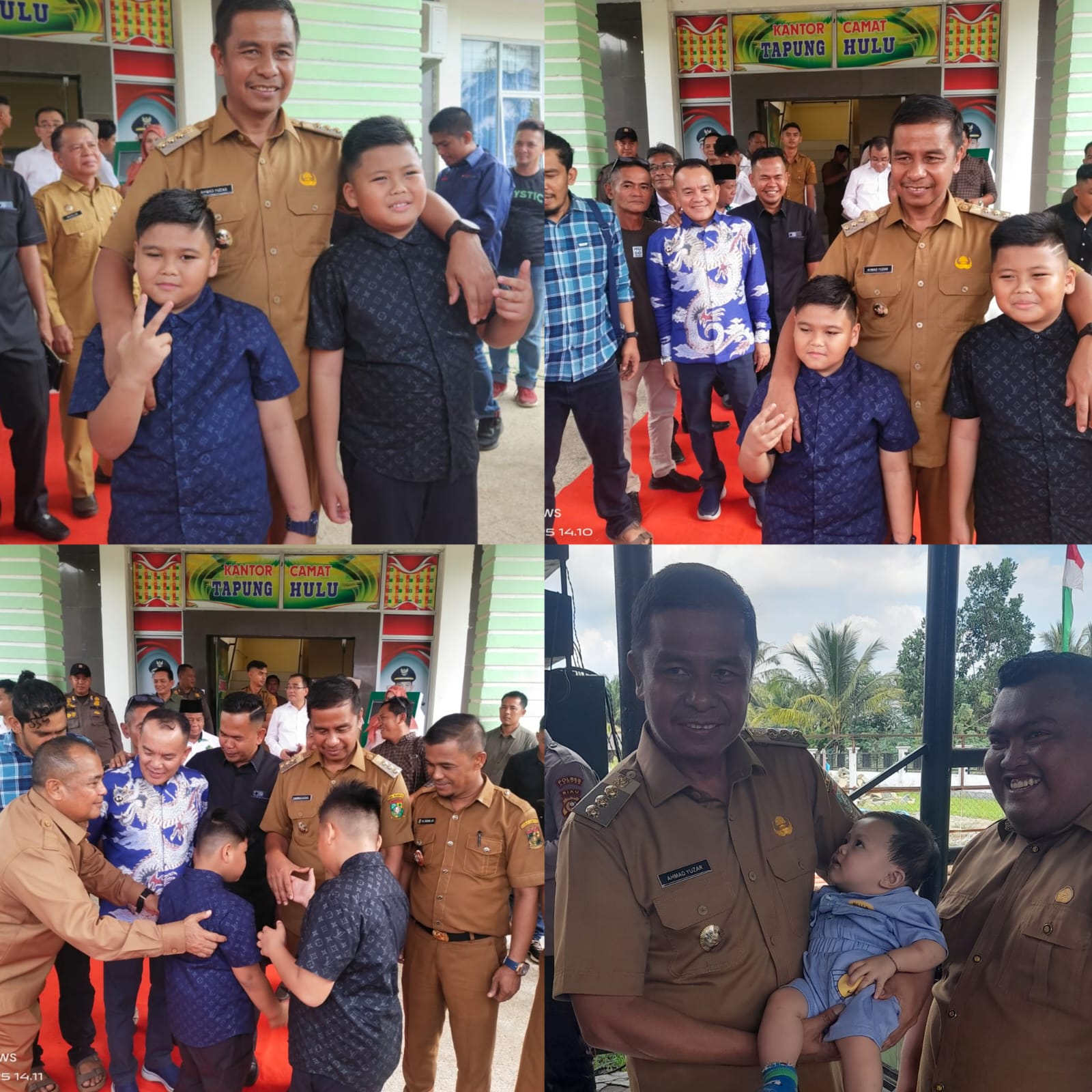 Dalam kesempatan tersebut, dua bocah ceria, Arsya dan Arsyafir, yang merupakan cucu dari A. Rachman Chan, Kepala Desa Senama nenek, tampak bahagia saat berfoto bersama sang datuk, Ahmad Yuzar, S.Sos, MT, yang saat ini menjabat sebagai Bupati Kampar. Momen tersebut turut disaksikan oleh keluarga, para pejabat daerah, serta tamu undangan yang hadir.