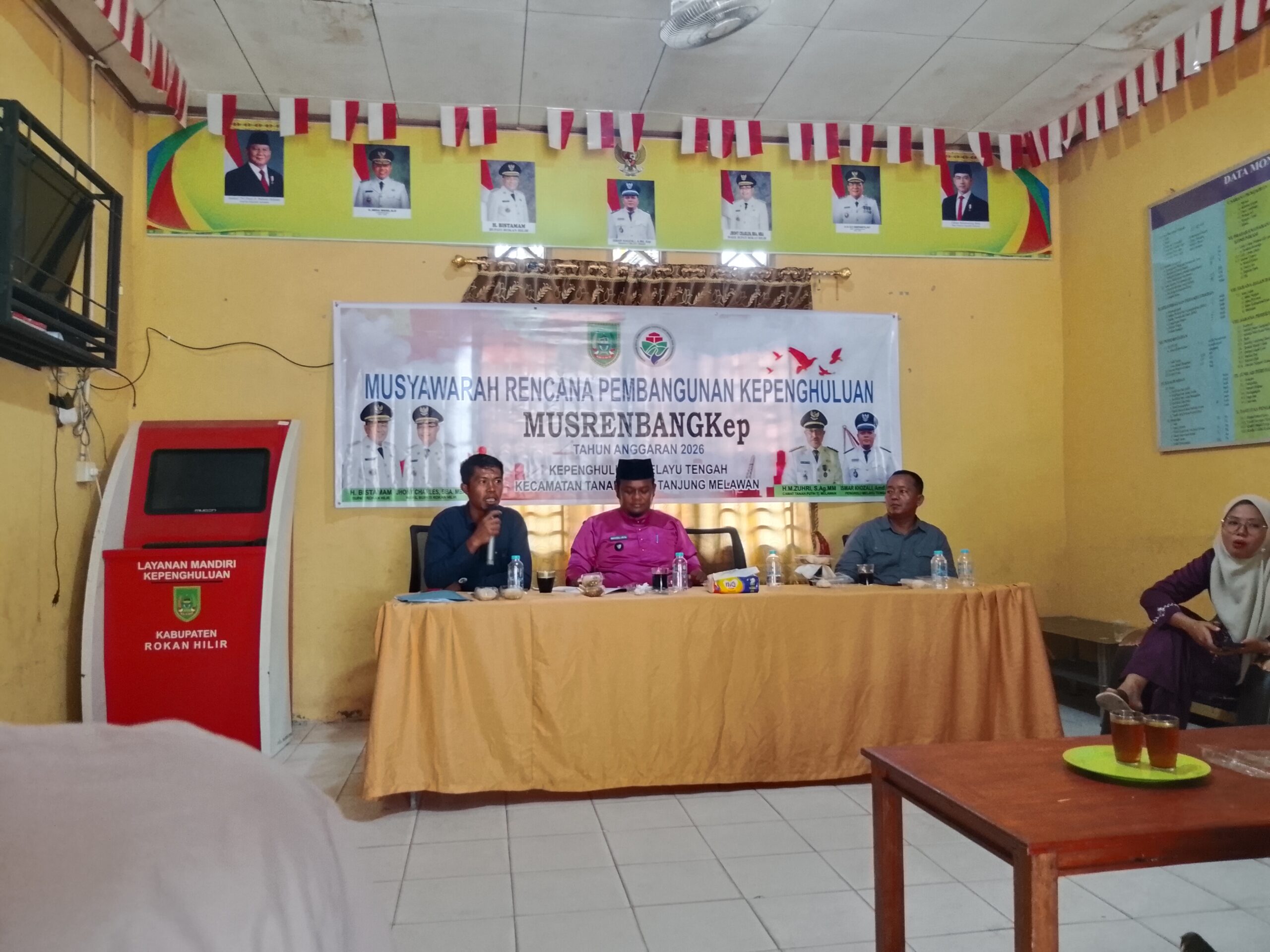 Cakrarepublik.com — Melayu tengah ,TPTM — Pemerintah Kepenghuluan Melayu tengah dibawah pimpinan Datuk penghulu Ismar khozali lakukan kegiatan musrenbangkep untuk  anggaran  tahun 2026 di aula kantor kepenghuluan Melayu tengah, kecamatan tanah putih tanjung melawan (TPTM), pada Jumat (24/10/2025)