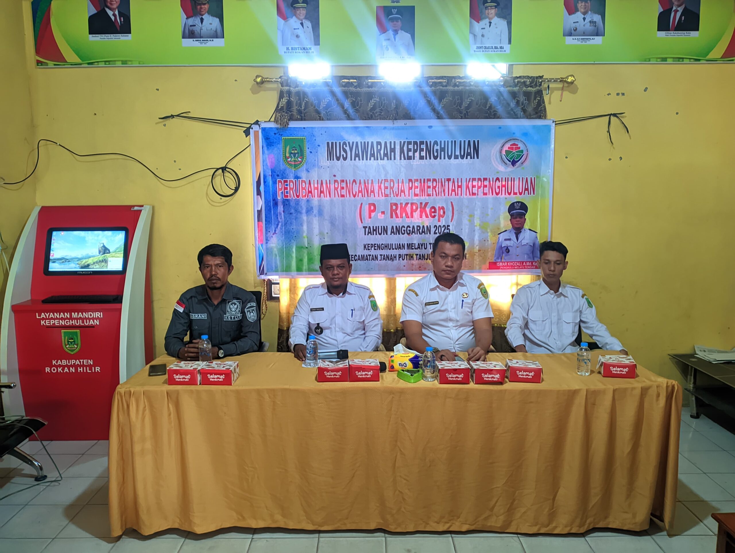 Cakrarepublik.com –Melayu tengah, TPTM —Pemerintah kepenghuluan Melayu tengah kecamatan Tanah putih tanjung melawan (TPTM) dibawah pimpinan Datuk penghulu Ismar khozali lakukan musyawarah Perubahan Rencana Kerja Pemerintah Kepenghuluan (P-RKP) dan Perubahan Anggaran pendapatan belanja kepenghuluan (P-APBKep) Kepenghuluan Melayu Tengah Tahun 2025, diaula kantor penghulu Melayu tengah, pada Rabu (10/12/2025).