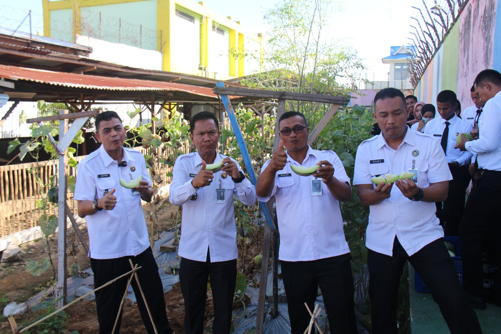 Pekanbaru, – Lembaga Pemasyarakatan (Lapas) Kelas IIA Pekanbaru terus tunjukkan komitmen mendukung ketahanan pangan nasional melalui program pembinaan berbasis kemandirian. Komitmen ini ditunjukkan melalui panen 62 kg buah melon yang dilaksanakan di area perkebunan dalam Lapas Pekanbaru pada Rabu (16/07).