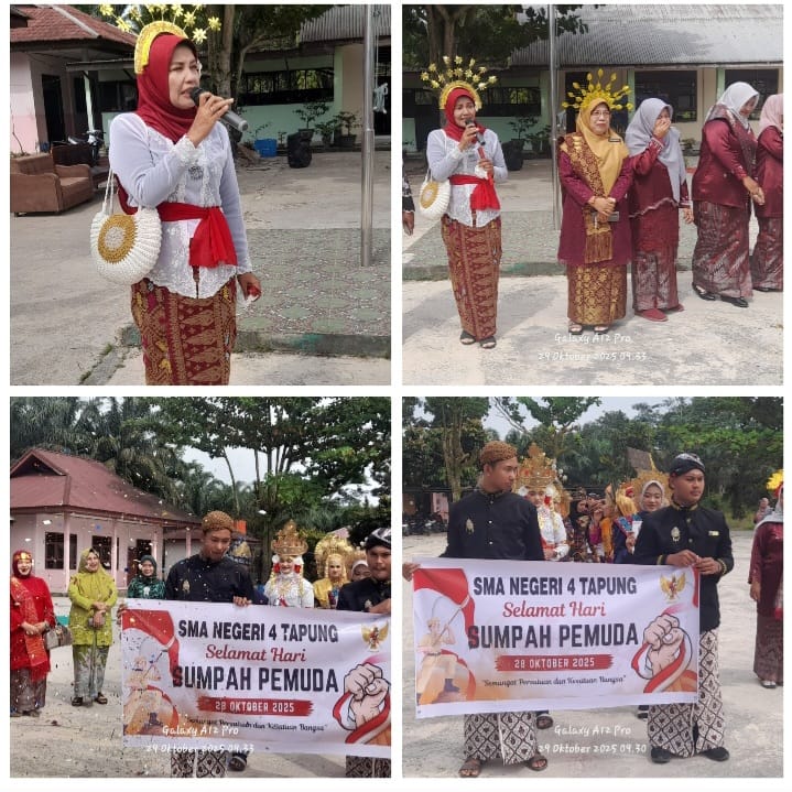 Tapung, 29 Oktober 2025 — Dalam rangka memperingati Hari Sumpah Pemuda ke-97, SMAN 4 Tapung menggelar kegiatan pawai yang berlangsung meriah pada Rabu (29/10/2025). Kegiatan ini diikuti oleh seluruh siswa, guru, serta tenaga kependidikan dengan penuh semangat dan antusiasme.