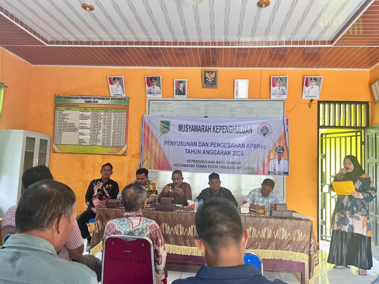 Cakrarepublik.com –Batu Hampar, TPTM —Pemerintah Kepenghuluan Batu Hampar kecamatan Tanah putih tanjung melawan dibawah pimpinan Datuk penghulu Pakhri Munir adakan musyawarah penyusunan dan pengesahan APBkep tahun 2026 di aula kantor penghulu Batu hampar jalan tenaga,pada Kamis (09/04/2026)