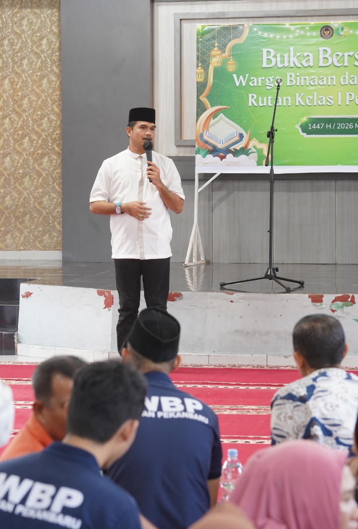 Pekanbaru – Rumah Tahanan Negara (Rutan) Kelas I Pekanbaru menggelar kegiatan buka puasa bersama antara warga binaan dan keluarga pada Jumat, 13 Maret 2026. Kegiatan ini dilaksanakan dalam suasana penuh kehangatan dan kebersamaan sebagai bagian dari upaya mempererat hubungan antara warga binaan dengan keluarga mereka di bulan suci Ramadhan.