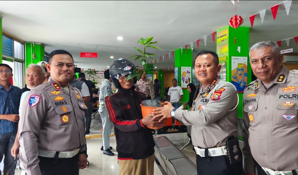 Saparudin, salah seorang wajib pajak yang menerima helm dan bibit pohon, juga menyampaikan rasa terima kasihnya.