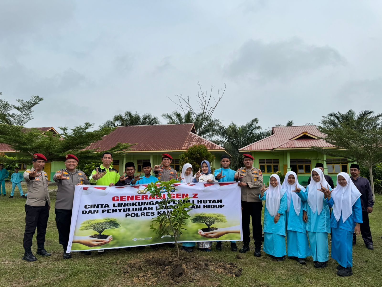 Kampar – Dalam rangka mendukung program Kapolda Riau tentang Green Policing, Polres Kampar melaksanakan kegiatan sosialisasi peduli lingkungan dan penanaman pohon di SMA Negeri 2 Kuok, Kecamatan Kuok, Kabupaten Kampar, pada Jumat (10/10/2025) pagi.