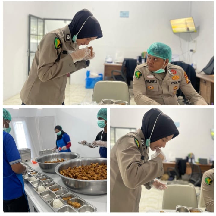“Total porsi hari ini sebanyak 2844 porsi, dan dari hasil pemeriksaan organoleptik, semua makanan dan minuman laik dikonsumsi,” jelas Bripka Indra Gunawan.