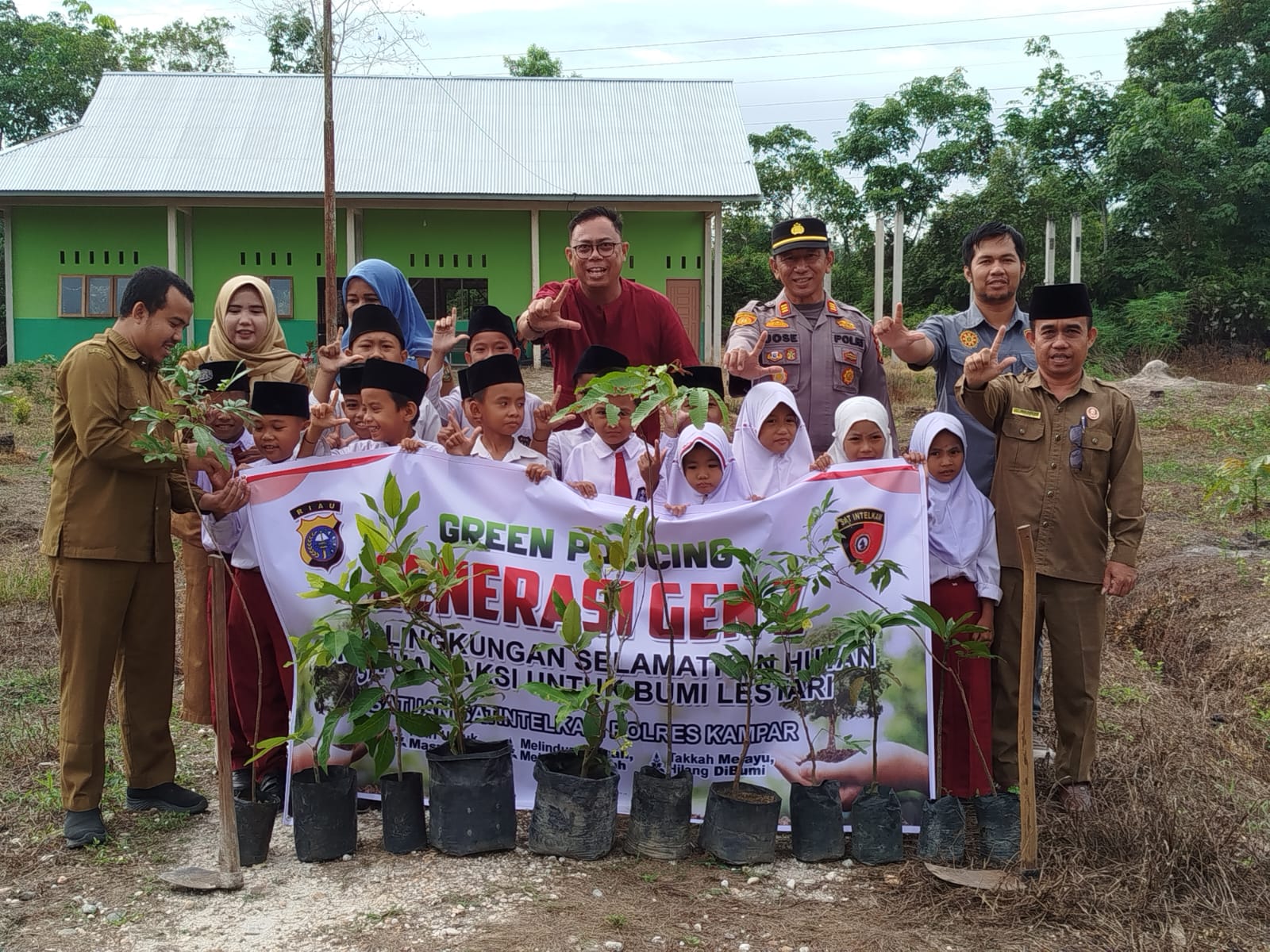 SALO – Polres Kampar terus menggencarkan program Green Policing sebagai wujud kepedulian terhadap lingkungan. Kali ini, sosialisasi dan penanaman pohon dilaksanakan di Madrasah Ibtidaiyah (MI) Darul Muhajirin Desa Salo Kec. Salo, Selasa (11/11/2025).