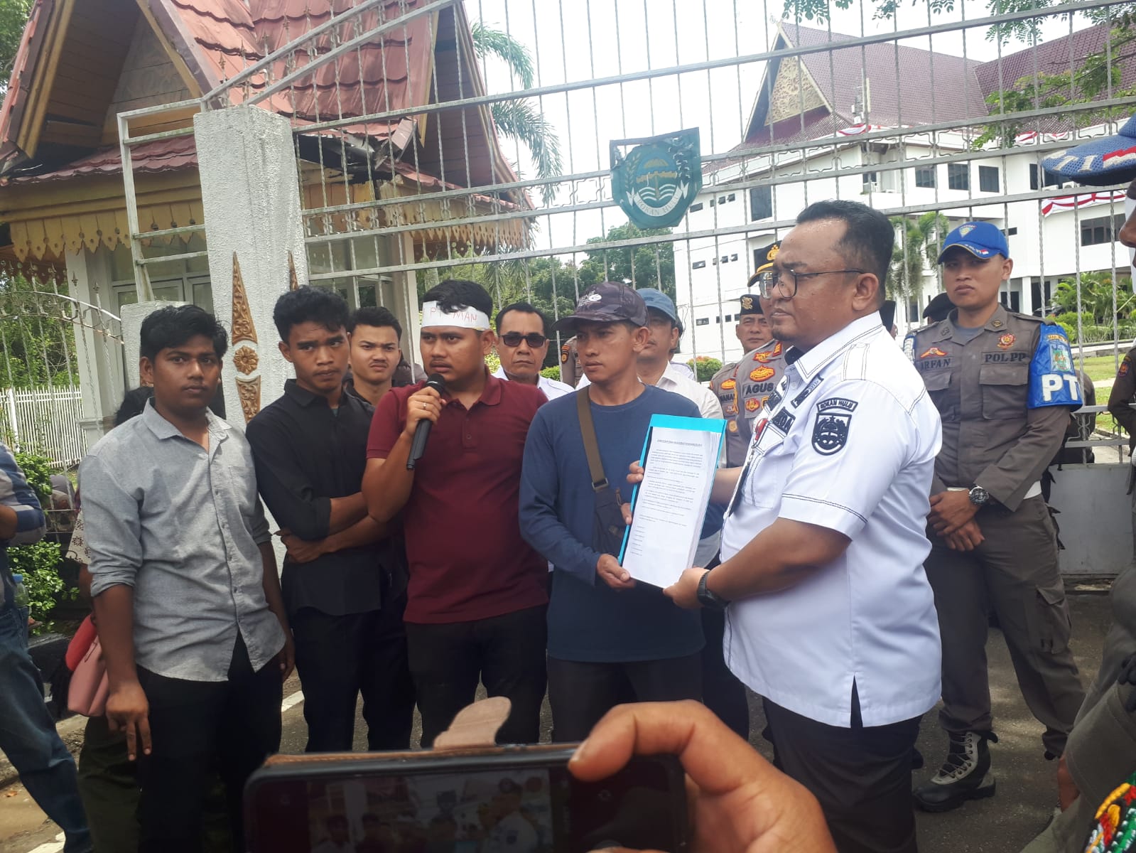 Aksi damai itu disambut oleh Sekretaris Daerah Kabupaten Rohul, M. Zaki, SSTP, yang hadir bersama jajaran asisten dan unsur Forkopimda. Zaki menyampaikan permohonan maaf atas ketidakhadiran Bupati dan Wakil Bupati karena sedang menjalankan agenda lain yang telah dijadwalkan sebelumnya.