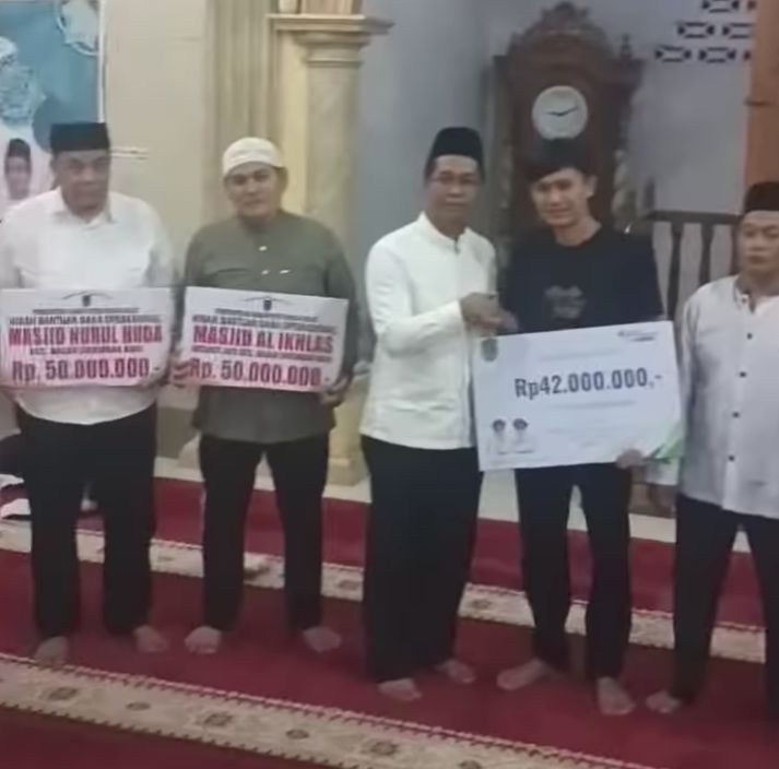 Bantuan tersebut diserahkan langsung Wakil Bupati Jhony Charles saat acara Safari Ramadhan 1446 H di Masjid Nurul Huda Kepenghuluan Bagan Sinembah Barat pada Selasa (25/0/3/2025)) malam. Adapun bantuan tersebut sebanyak 100 juta dengan rincian Masjid Nurul Huda 50 juta dan Masjid Al Ikhlas 50 juta.