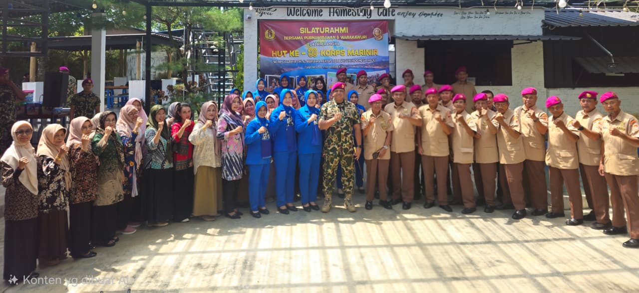Batam – Dalam rangka menyambut peringatan HUT ke-80 Korps Marinir, Komandan Batalyon Marinir Pertahanan Pangkalan (Danyonmarhanlan) IV Batam Letkol Marinir Tomas Febrianto, M. Tr. Opsla beserta Ketua Ranting C Cabang 1 Korcab Pasmar 1 Gabungan Jalasenastri Korps Marinir Ny. Ummi Tomas Febrianto dan Pengurus Serta seluruh Prajurit Yonmarhanlan IV Batam. melaksanakan kegiatan Silahturahmi Bersama Purnawirawan dan warakawuri di home stay café Kijang, Bintan. Sabtu (08/11/2025).