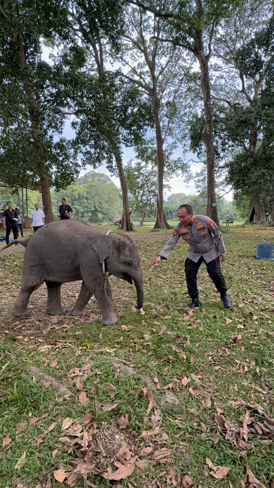 Ia datang bersama Kepala BBKSDA Riau Supartono, personel Bhabinkamtibmas, serta petugas konservasi gajah.