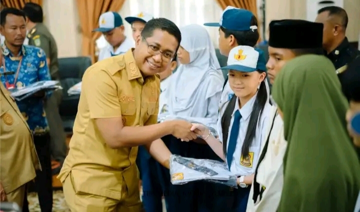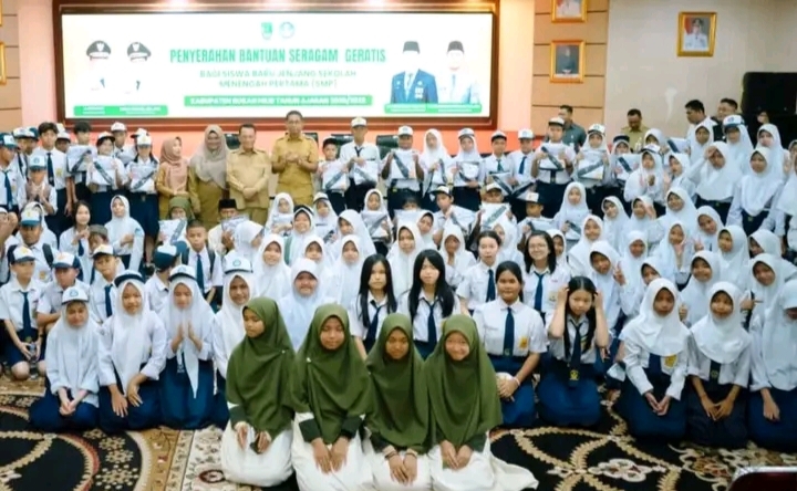 Cakrarepublik.com –Bagan siapi api —Bupati Rohil dan wakil Bupati Rohil H.bistamam dan Jhony Charles salurkan bantuan seragam gratis secara simbolis kepada murid tingkat SMP negeri dan swasta di gedung serbaguna misran rais, Bagan siapi api, pada Senin (10/11/2025)