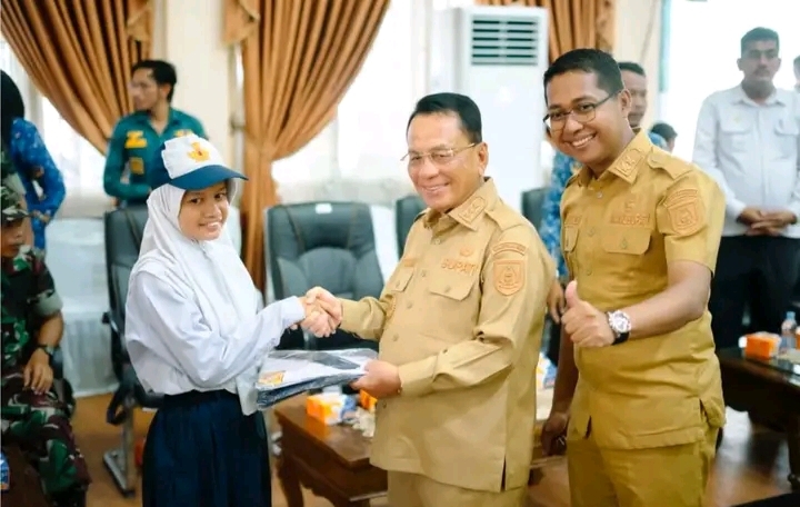 Cakrarepublik.com –Bagan siapi api —Bupati Rohil dan wakil Bupati Rohil H.bistamam dan Jhony Charles salurkan bantuan seragam gratis secara simbolis kepada murid tingkat SMP negeri dan swasta di gedung serbaguna misran rais, Bagan siapi api, pada Senin (10/11/2025)
