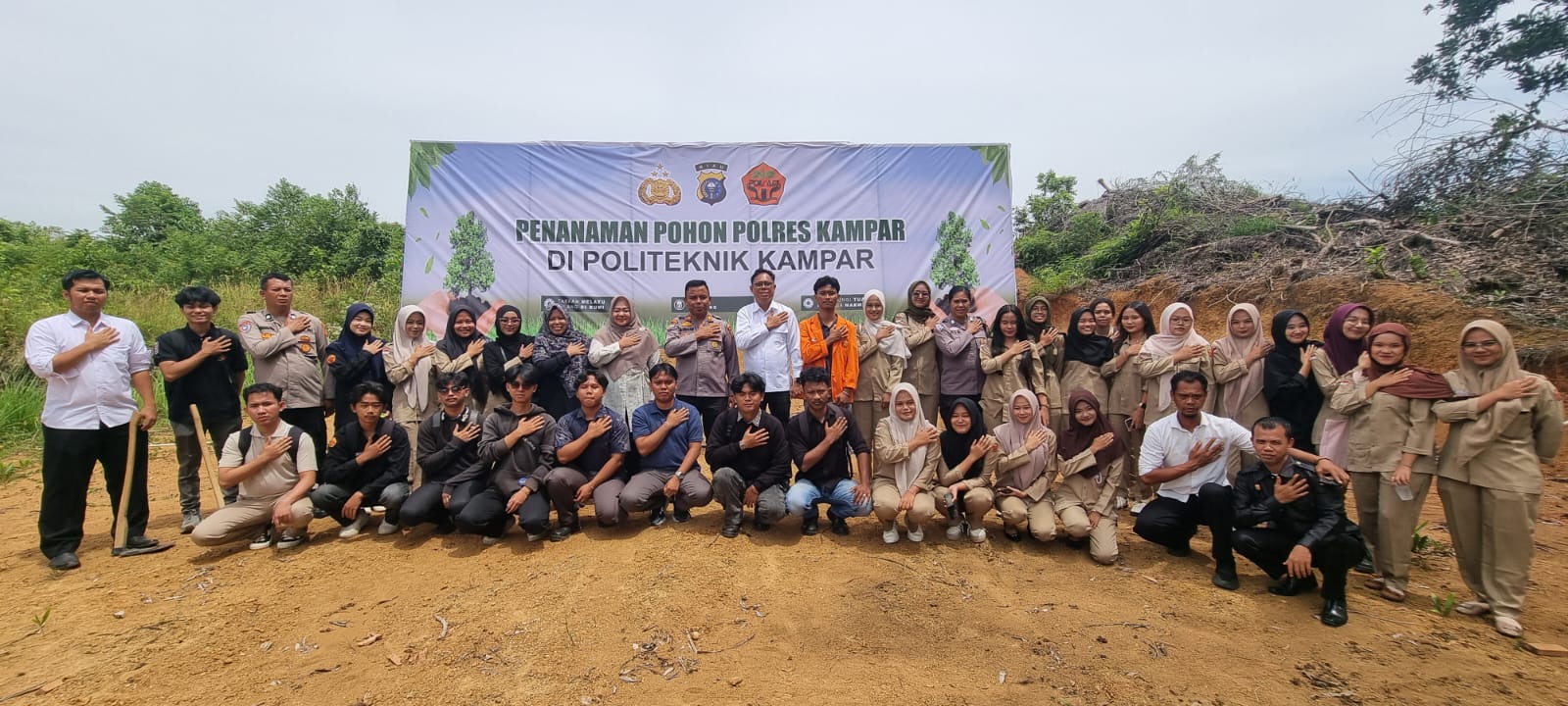 Kampar – Polres Kampar terus menjalin kedekatan dengan kalangan mahasiswa melalui program-program yang bermanfaat bagi masyarakat dan lingkungan. Kali ini, Polres Kampar menggelar sosialisasi Green Policing dan penanaman pohon di Kampus Politeknik Kampar (Polkam) Jln. Lingkar Bangkinang Desa Batu Belah Kec. Kampar Kab. Kampar, Senin (27/10/2025).