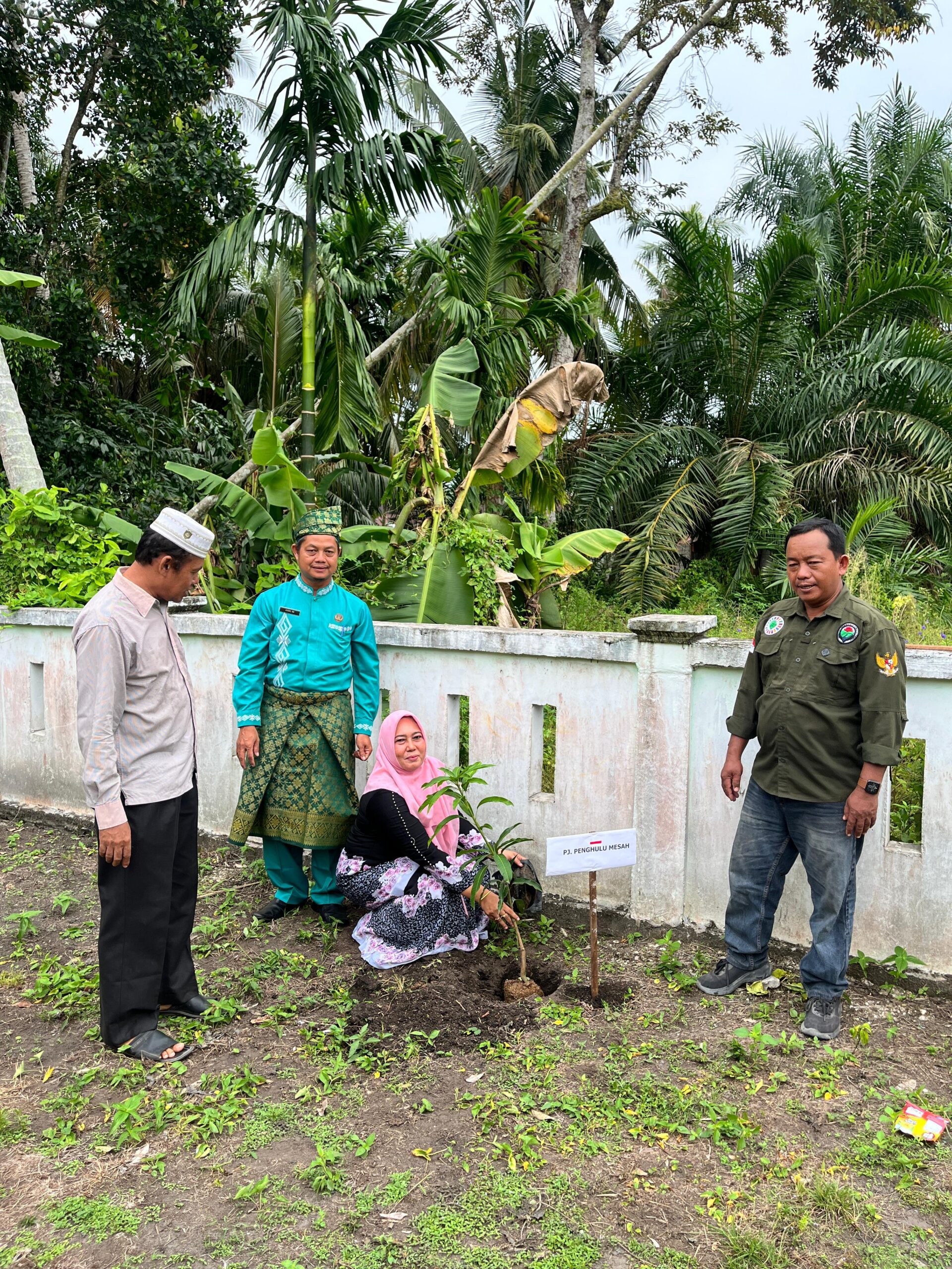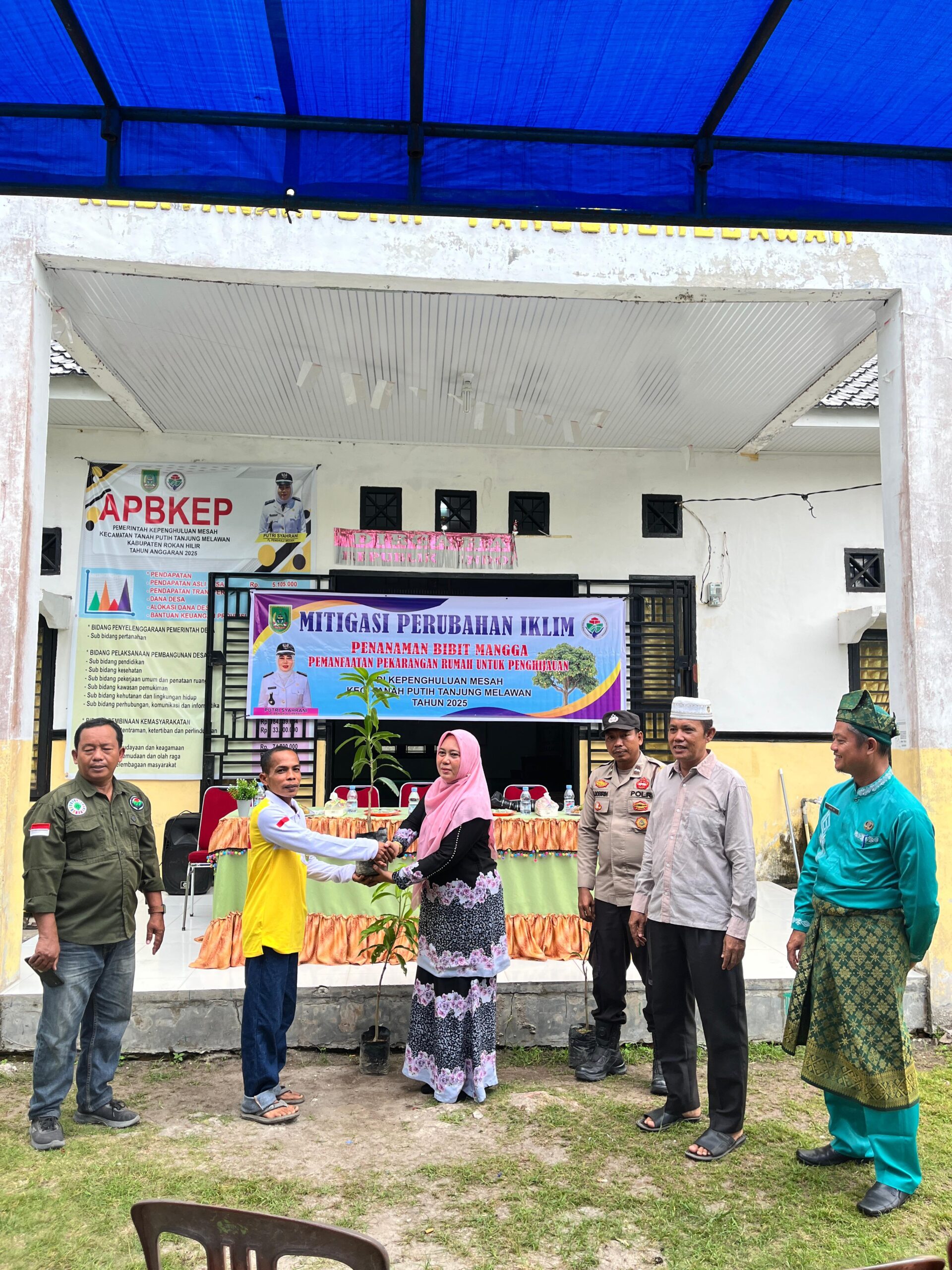 Untuk mensukseskan mitigasi perubahan iklim ini, Datin penghulu mesah Putri syahrani bersama ketua BPKep Mesah Kh.Abdurrahman, sag,  memberikan bantuan dan   menanam  bibit tanaman produktif mangga   di kantor kepenghuluan Mesah, pada Senin (04/08/2025)