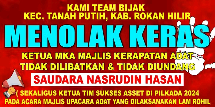 Diberbagai platform media sosial baik itu Facebook maupun tiktok, berserak Poto dan video penolakan ketua LAM Rohil dalam acara upacara adat penyambutan Bupati dan Wakil Bupati oleh LAMR Kabupaten.