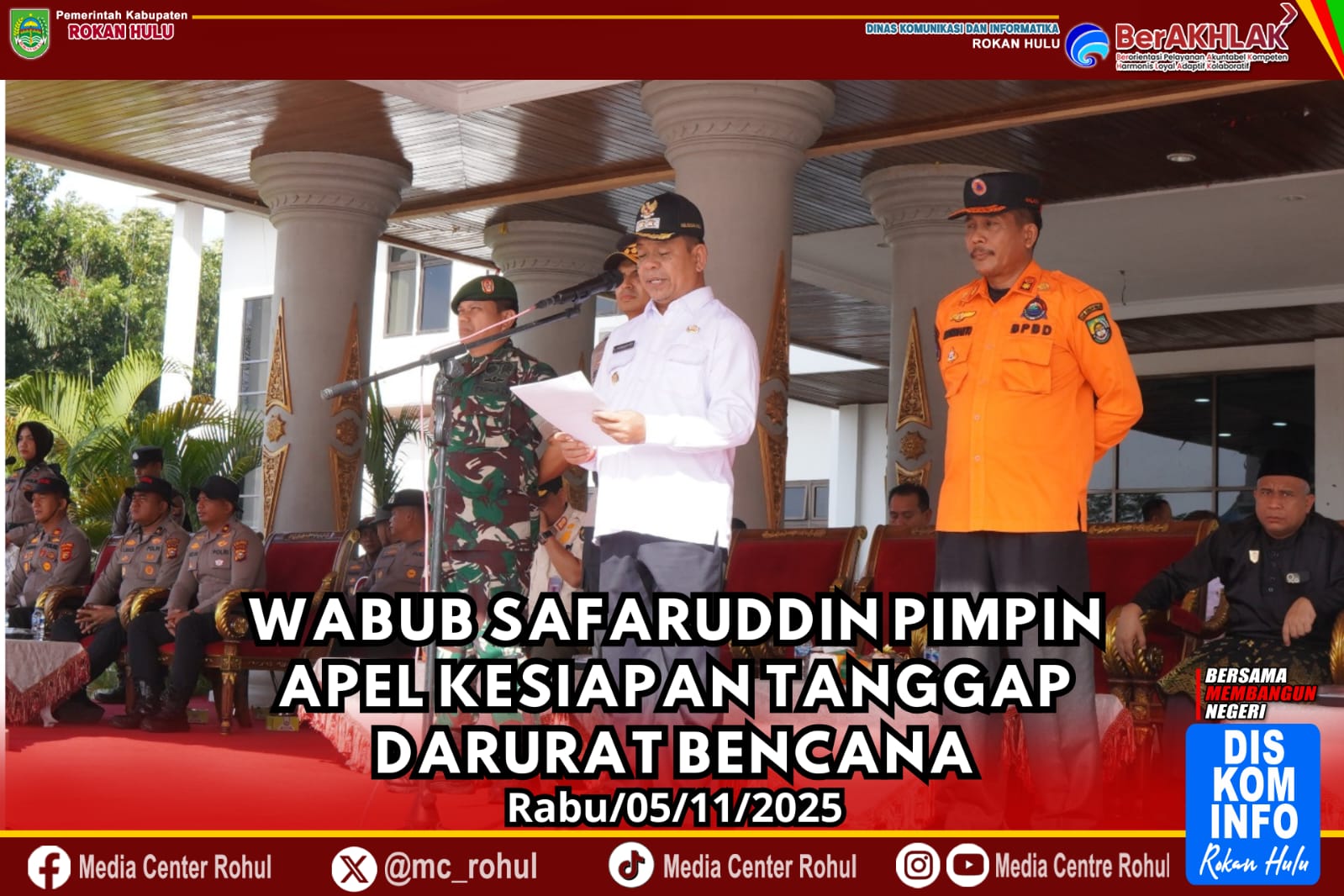 Rohul – Apel kesiapan dalam rangka tanggap darurat bencana hidrometeorologi yang diselenggarakan secara serentak di seluruh Indonesia di halaman Kantor Bupati Rokan Hulu dipimpin oleh wakil Bupati Rokan Hulu H. Syafarudin Poti, SH, MM, Rabu (5/11/2025).