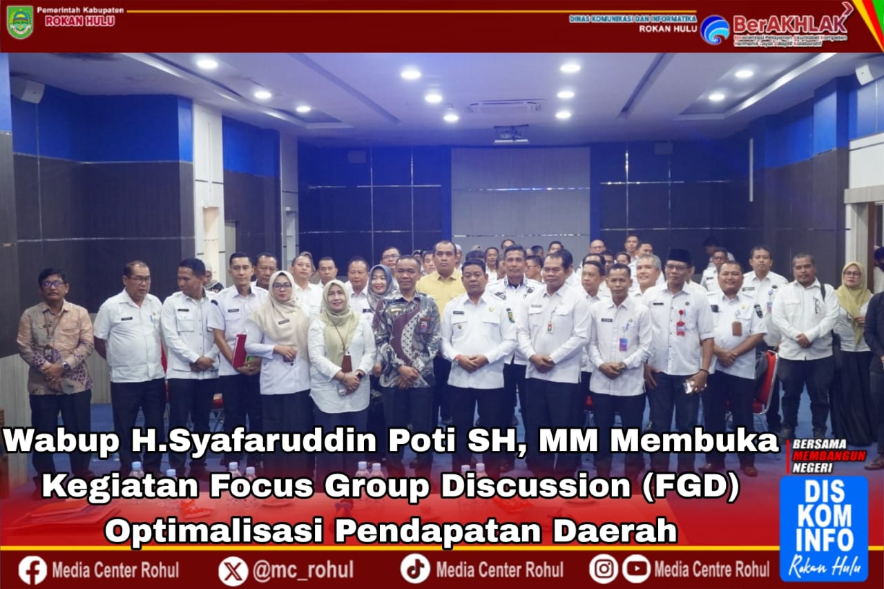 Rohul – Wakil Bupati Rokan Hulu H. Syafaruddin Poti, SH, MM membuka Kegiatan Focus Group Discussion (FGD) Optimalisasi Pendapatan Daerah di Ruang Rapat Lantai III kantor Bupati Rokan Hulu, Rabu (10/12/2025).