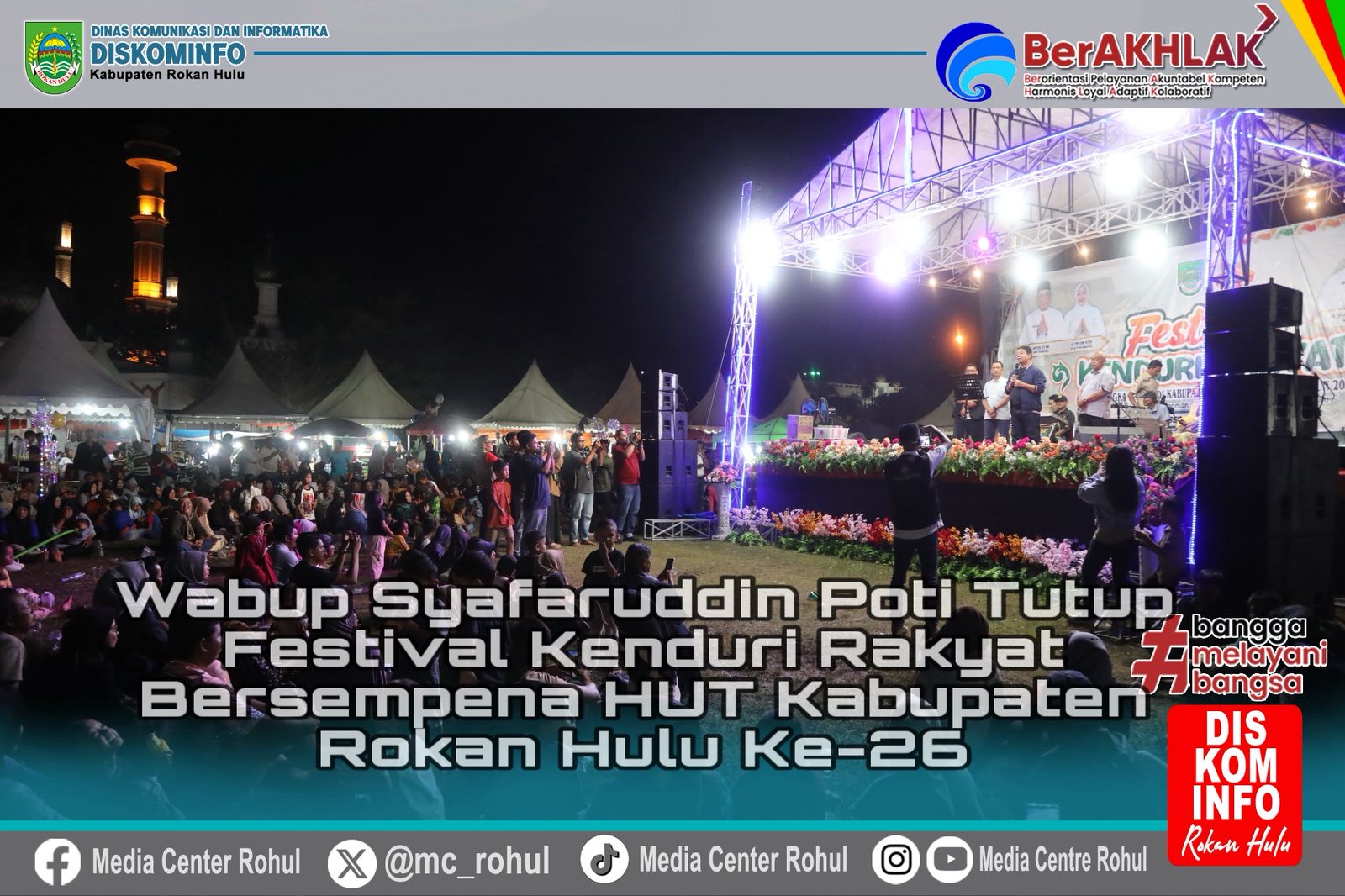 Rohul – Bersempena Hari Ulang Tahun Kabupaten Rokan Hulu (Rohul) Ke-26, Pemerintah Kabupaten (Pemkab) Rohul tutup secara resmi Festival Kenduri Rakyat, Minggu (26/10/2025).