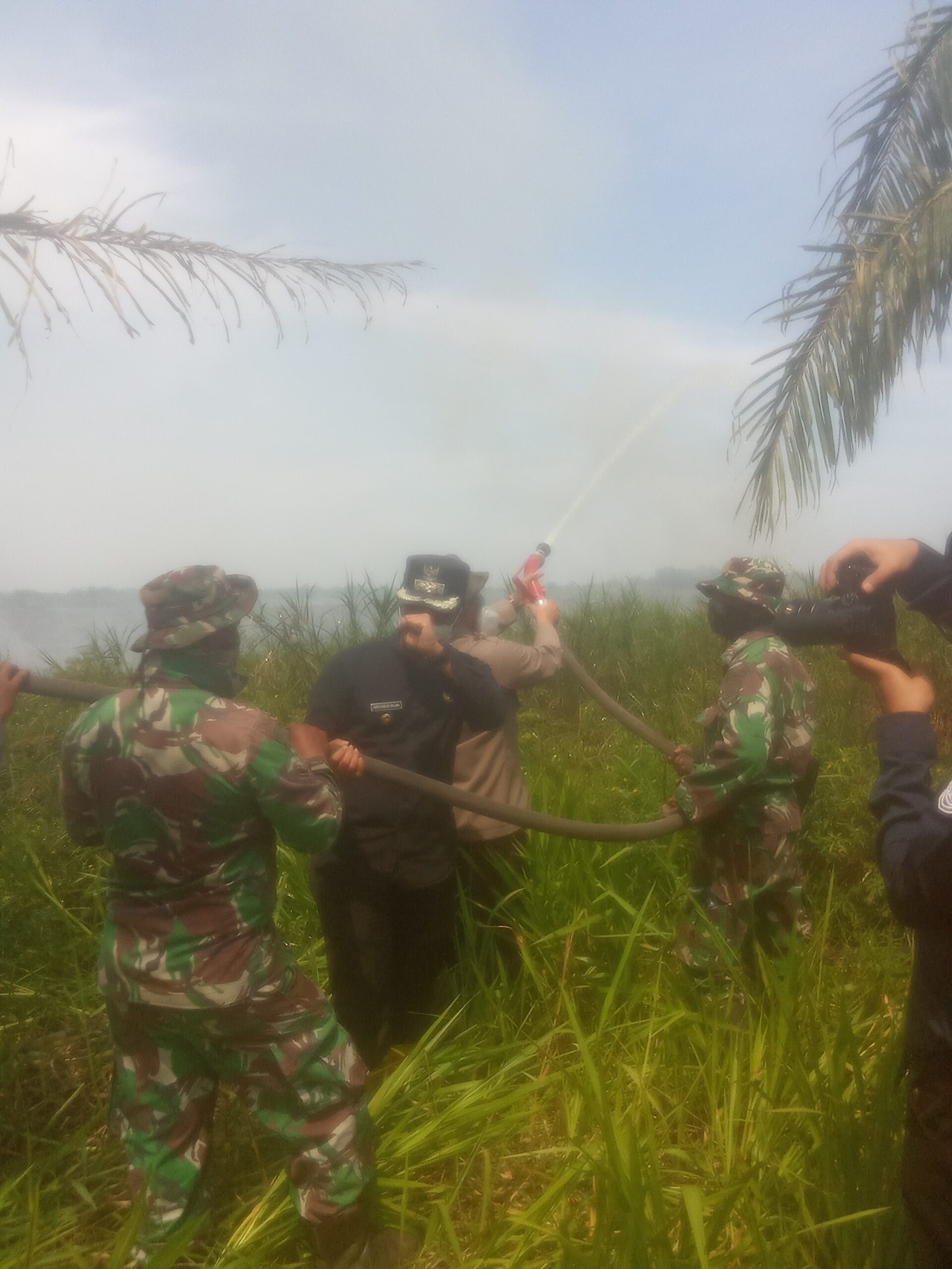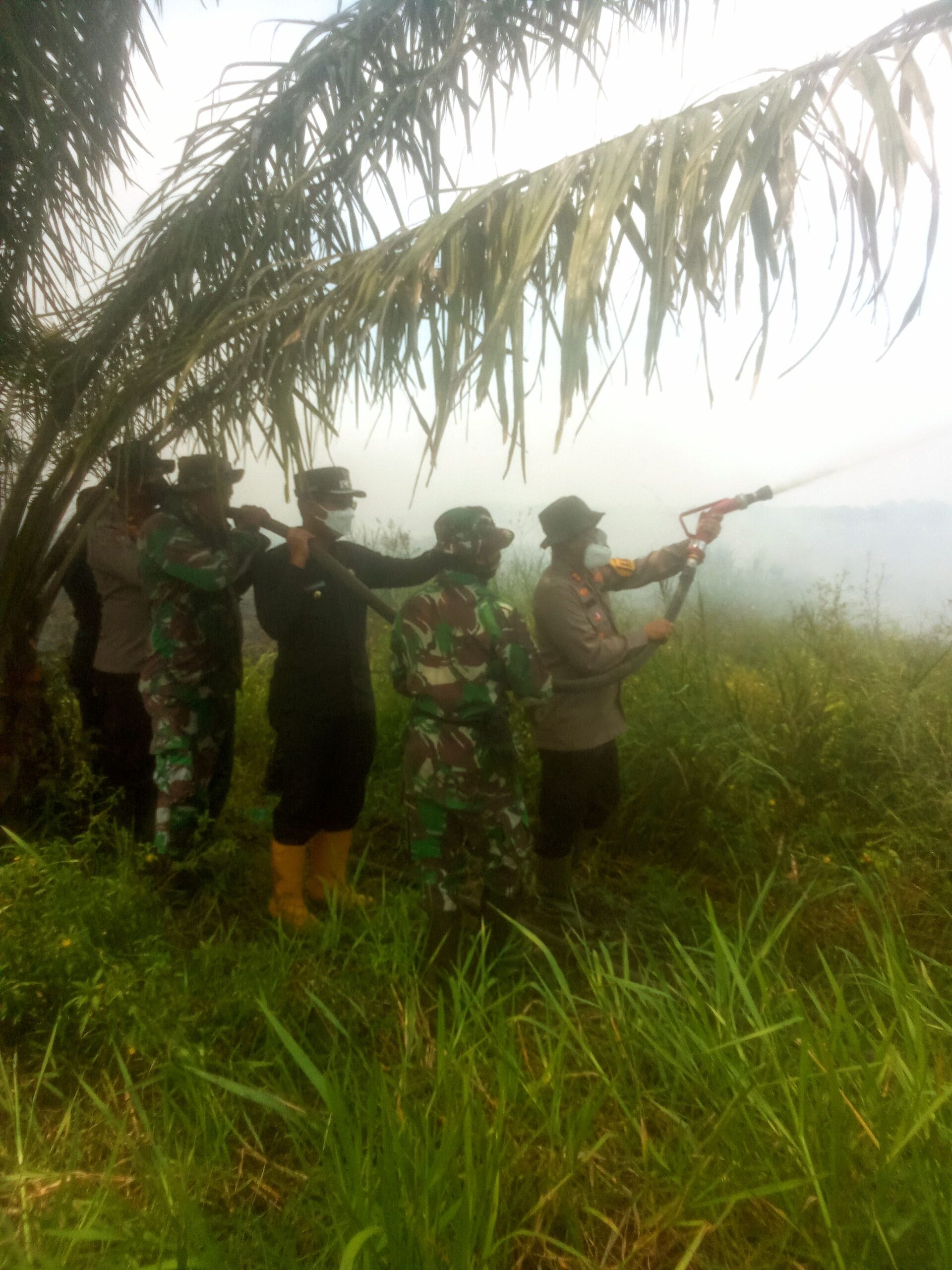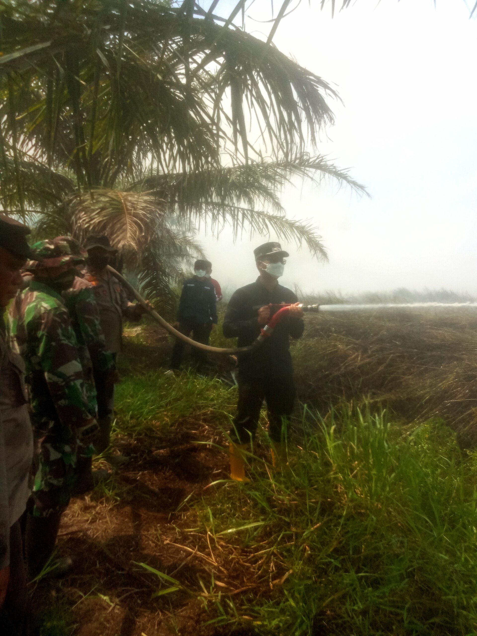 Wakil Bupati Rohil Jhony Charles bersama Kapolres Rohil AKBP isa imam syahroni dan Dandim 0321 turun langsung memadamkan kebakaran lahan di kepenghuluan Bangko permata